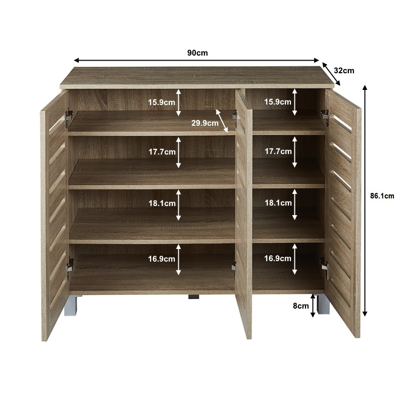 VHIVE Vegas 3 Door 90cm Shoe Cabinet (Oak Shoe Rack Storage Cabinet)