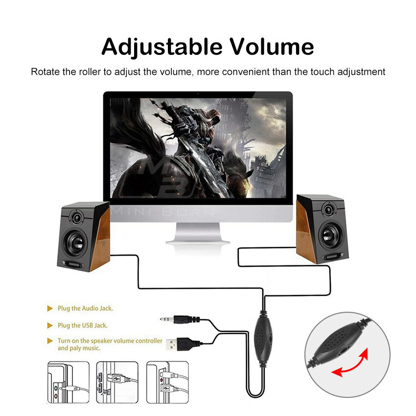 Mini Born 2PCS Soundbar Desktop Computer Speaker TV Super Bass Subwoofer 3.5mm Wired Soundbox USB Powered Home Speakers Portable Speaker for Home Office