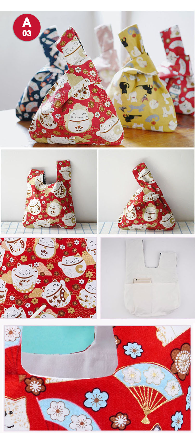 CNY Gift Japanese Wristlet Bag / Lunch Bag / / Teacher Day Gift Idea / Drawstring Pouch / Knot Bag / Tote Bags / wristlet pouch / wristlet / Goodie bag / Gift Bag / Japanese style wristlet / Para Liv