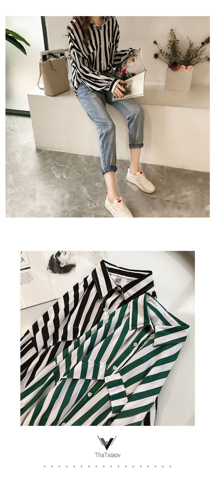 EDQRDQ Women's Fashion Plus Size Blouse Green Stripe Loose Long Sleeve Shirts Tops