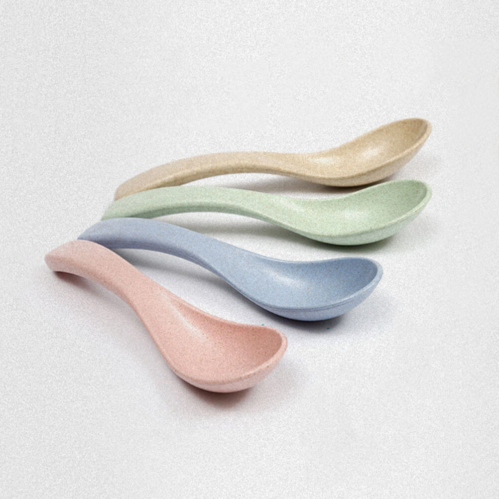 HOMEMAXS 4 Pairs of 4 Colors Wheat Tableware Straw Eating Spoon Rice Bowl Spoon Soup Spoon Children Dining Spoon Eating Spoon Baby Spoon