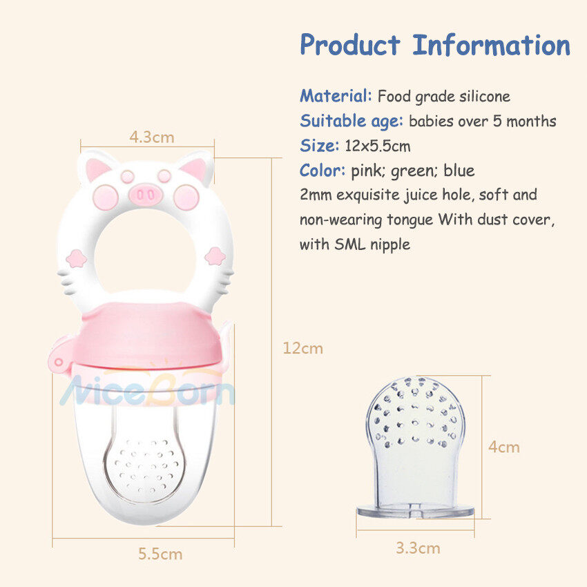NiceBorn Baby Pacifier Fresh Food Feeder Newborn Infant Soother Fresh Fruit Milk Nibbler Safety Silicone BPA Free Toddlers 3 Different Sized Silicone Teething Pacifiers