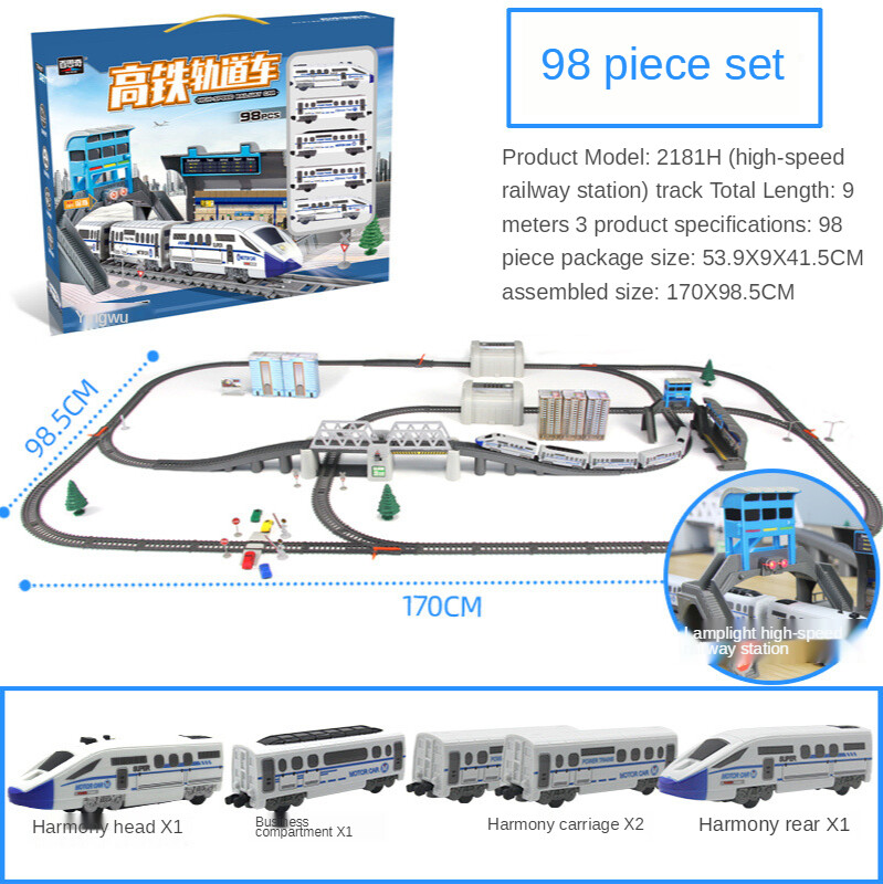 Electric Harmony Rail Car Toy Small Train Stitching DIY Set High Speed Rail Rail trains Railway stations Simulated high-speed rail Children's educational toys Birthday gifts