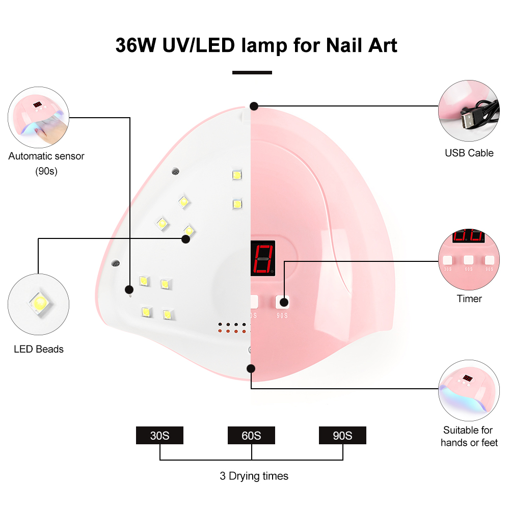 Step 5: Apply the top coat, dry under a UV lamp (2 -3 minutes) or LED lamp (30 to 60 seconds), and then degrease with the cotton cleaner to remove the sticky surface