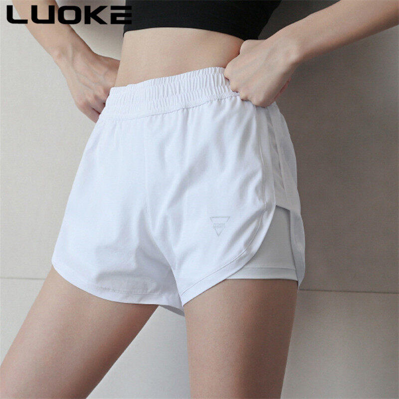 LUOKE Sport Shorts Women 2 In 1 with Pockets Sport Shorts Woman Gym Shorts Woman Fashion Printing Quick-drying Fabric