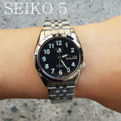 Seiko 5 SNK381K1 SNK381K SNK381 Analog Automatic Black Dial Stainless Steel Men's Watch