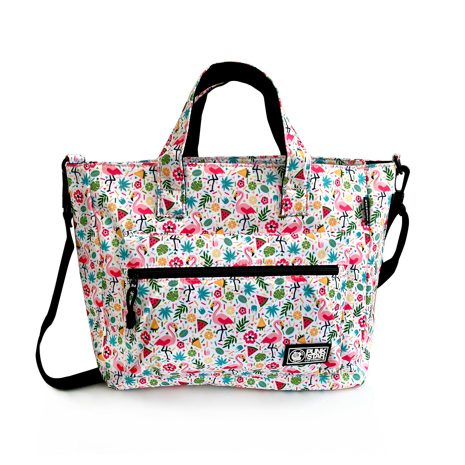 Our tote bag is made of super lightweight yet durable and water resistant polyester material & comes in a variety of designs. This tote bag comes with an extra shoulder strap, you can sling across your back to keep your hands free when shopping.