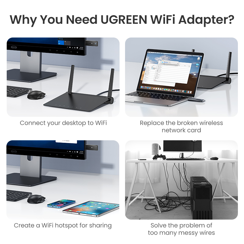 UGREEN 2.4G & 5G Wifi Wireless Adapter 1300Mbps 650Mbps USB WiFi Netowrk Card for PC Computer USB WiFi Adapter USB Ethernet WiFi