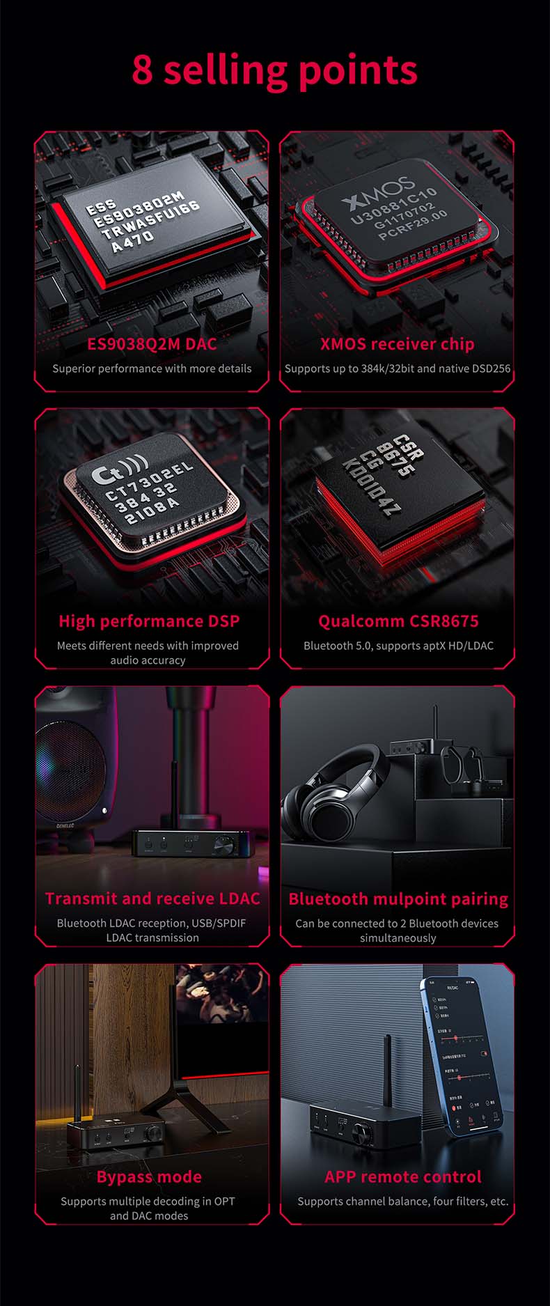 >BTA30 Pro can serve as a high-fidelity desktop DAC if you require it to be. It supports not only Bluetooth and USB as input ports but also has SPDIF Coaxial and Optical digital inputs.