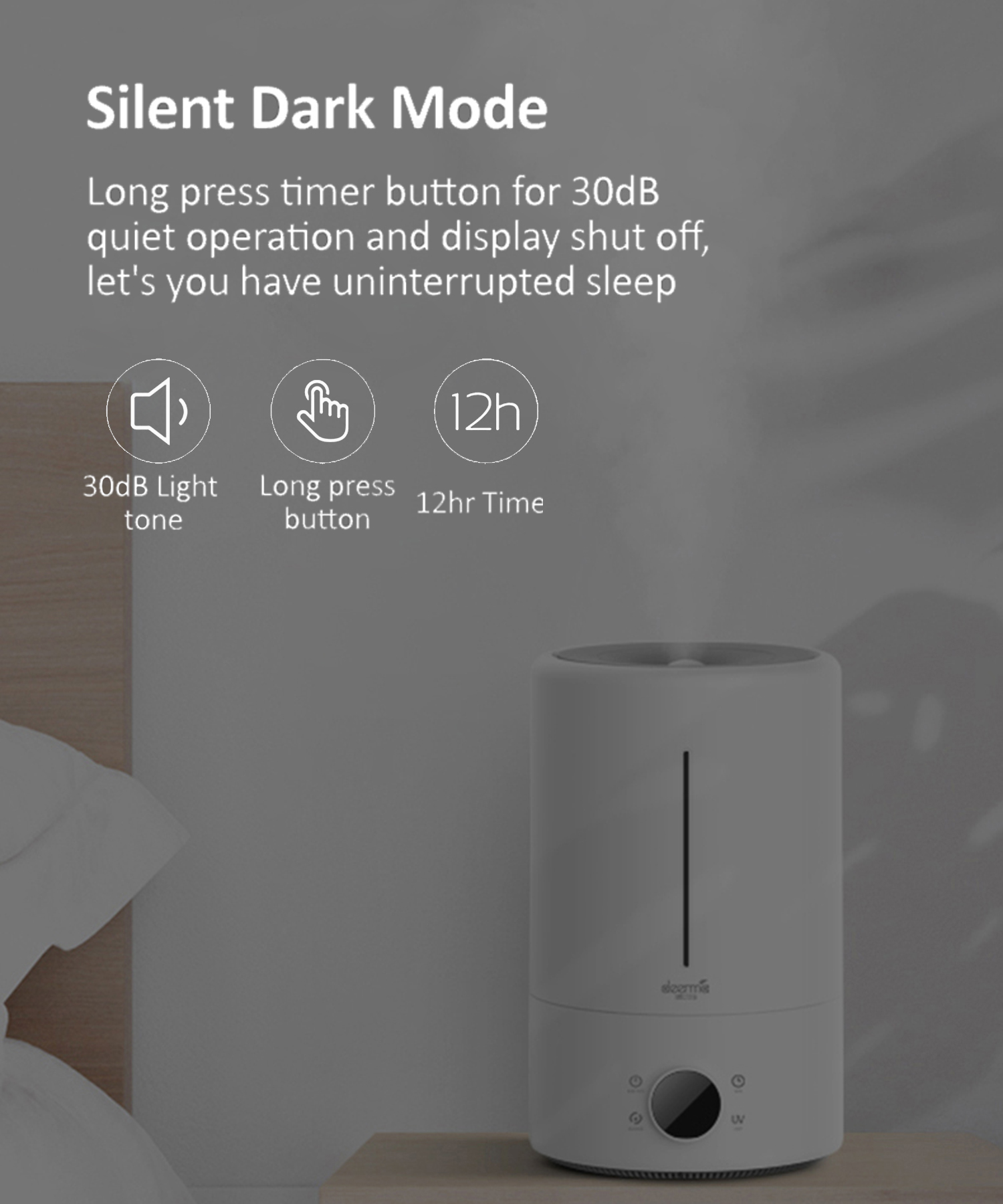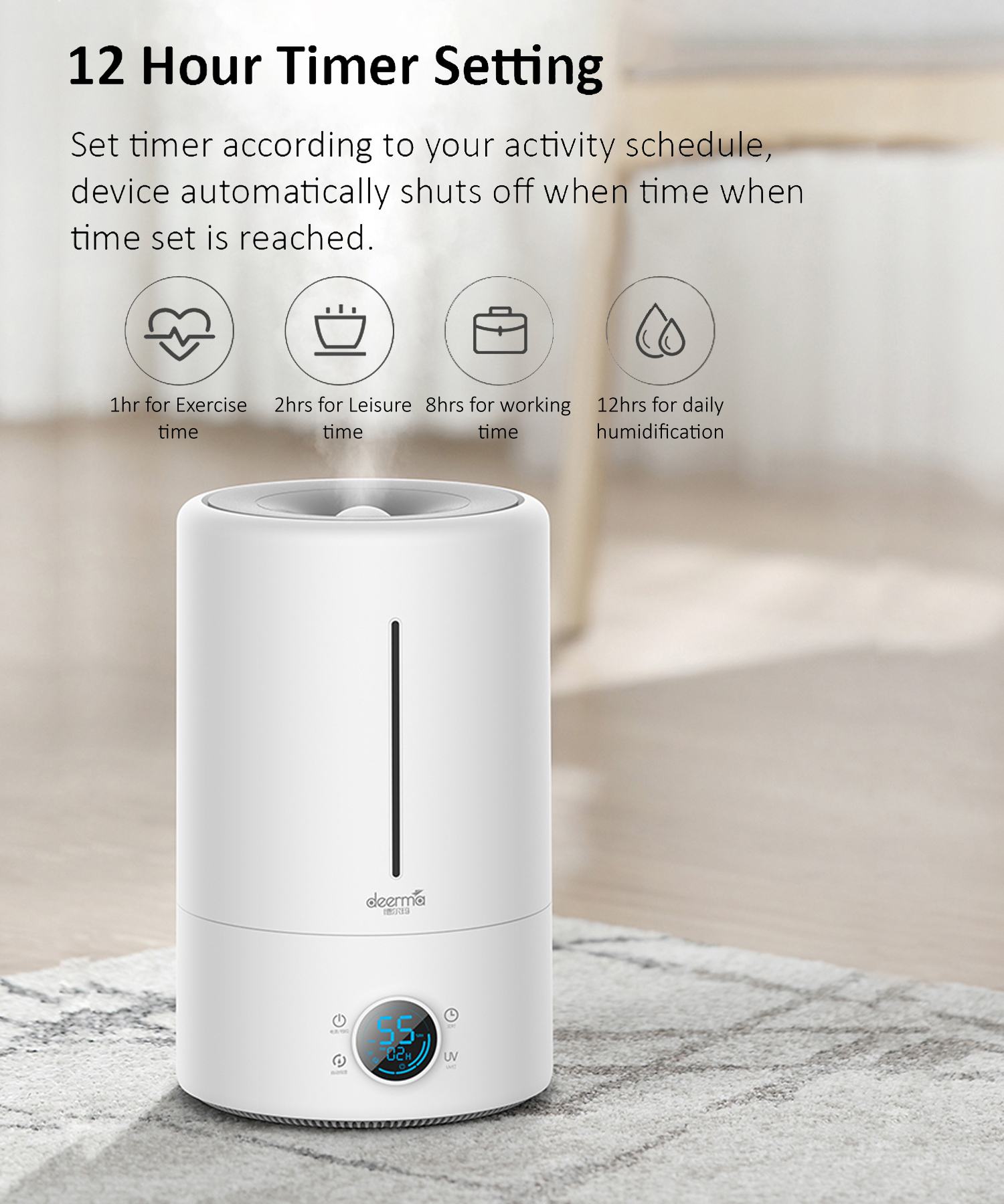 Deerma F628S Smart Humidifier 5L UV Lamp Sterilization 3 Gear 12H Timing Touch Display Low Noise, White