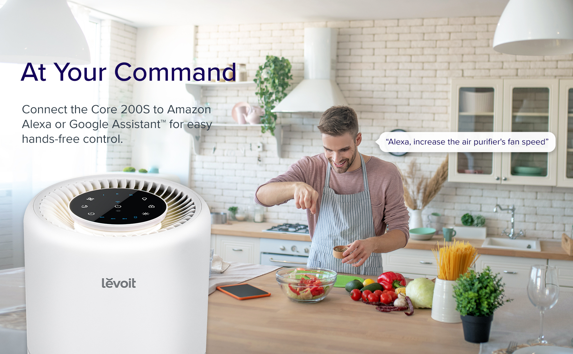 Levoit Core200S Smart WiFi Air Purifier for Home, Alexa Enabled H13 True HEPA Filter for Allergies, Pets, Smokers, Smoke, Dust, Pollen, 24dB Quiet Air Cleaner for Bedroom with Display Off Design - Bri