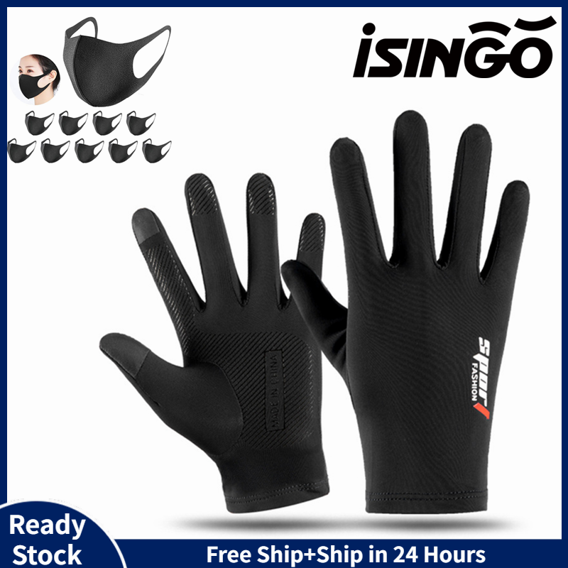 iSingo 【C O D】1 Pair Touch Screen Gloves Motorcycle Motor Gloves Racing Protective Gloves Breathable Ice Silk Non-Slip Anti-UV Outdoor Sports Riding Gloves