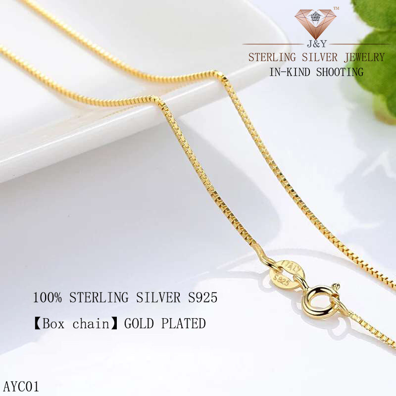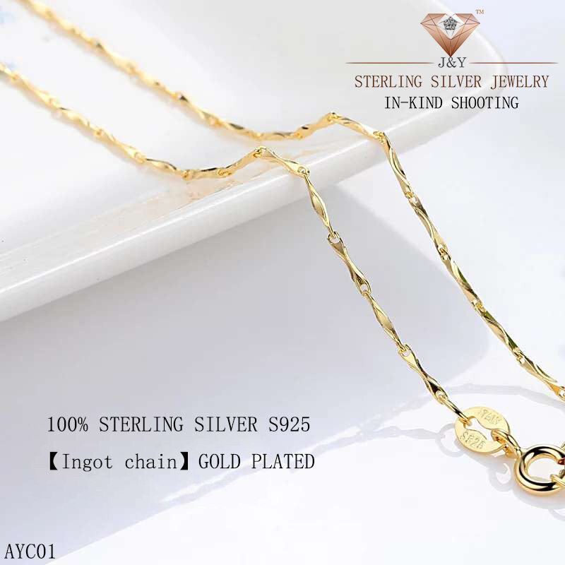 ✨J&Y SILVER✨【In Stock】100% Sterling Silver S925 Necklace Chain Different Design/Length Gold plated Jewelry Gift 09