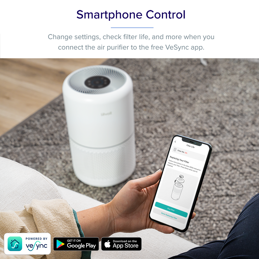 Levoit Core 300S Smart WiFi Air Purifier, H13 True HEPA filtration, Red Dot 2020 Winner, Upgraded Core 300 features with PM2.5 Display Monitor, Remove airborne particles, dust, smoke and unpleasant od