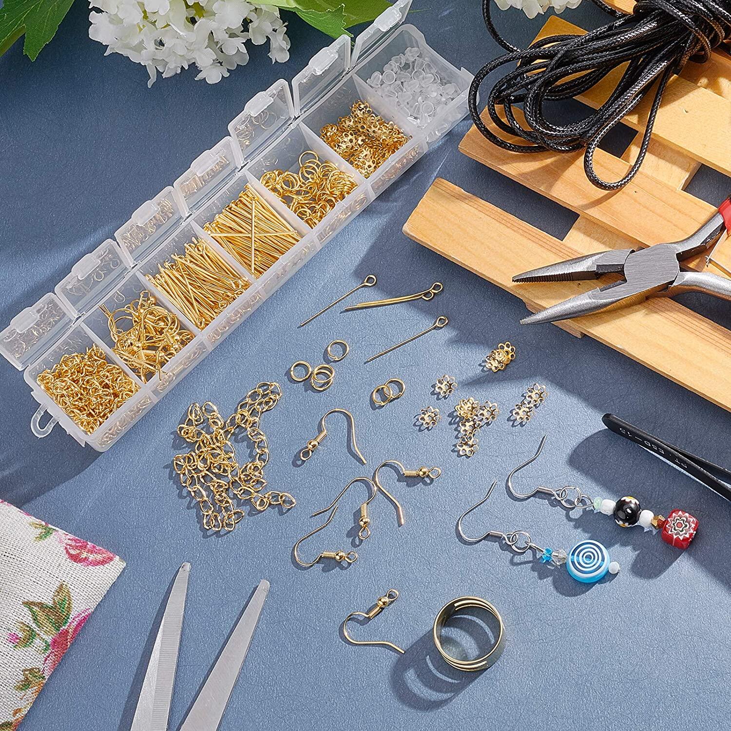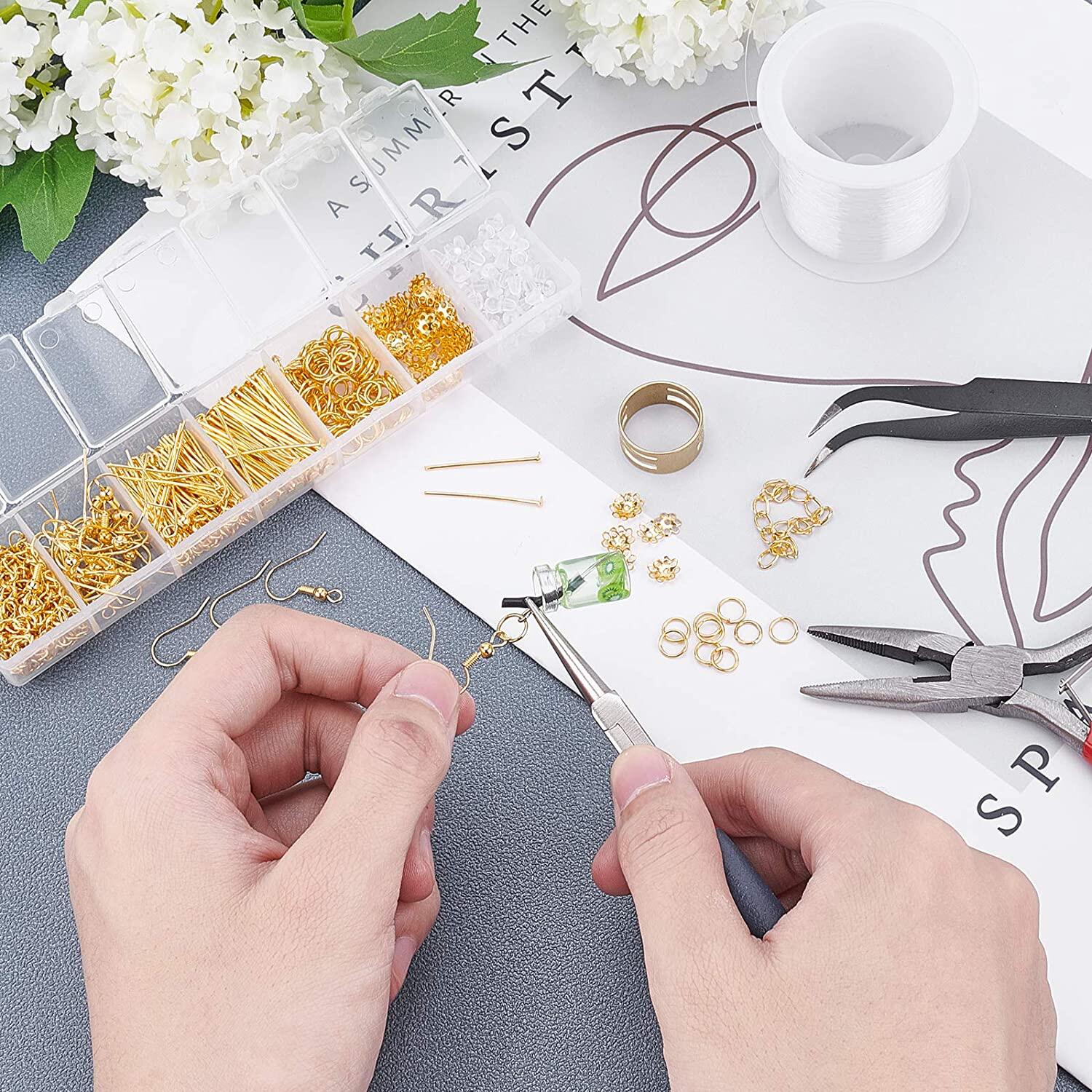 363 Pcs Earring Making Kit Including Earring Hooks Ear Nuts Jump Rings Bead Caps Eye Pins Head Pins Chain Extender Needle Nose Plier Tweezer for DIY Earring Jewelry Craft Making Golden