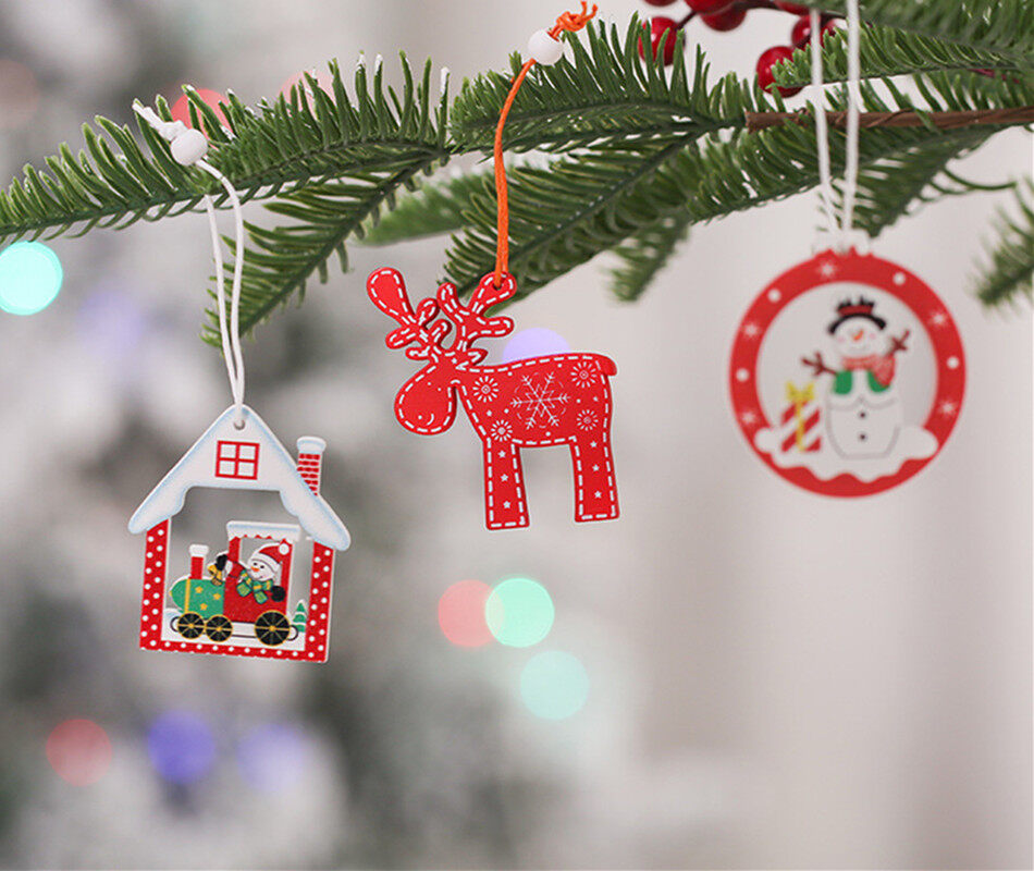 12pcs/lot Christmas Tree Ornament Wooden Snowflake Hanging Pendants Xmas Decoration For Home New Year Kids Gifts Party Favors