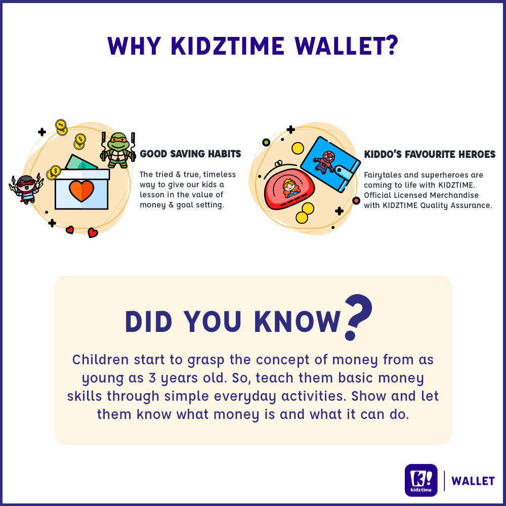 Kidztime Wallet Bifold/Trifold With Coin Compartment Elastic Spring Coil Keychain