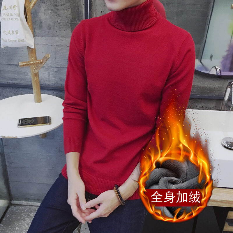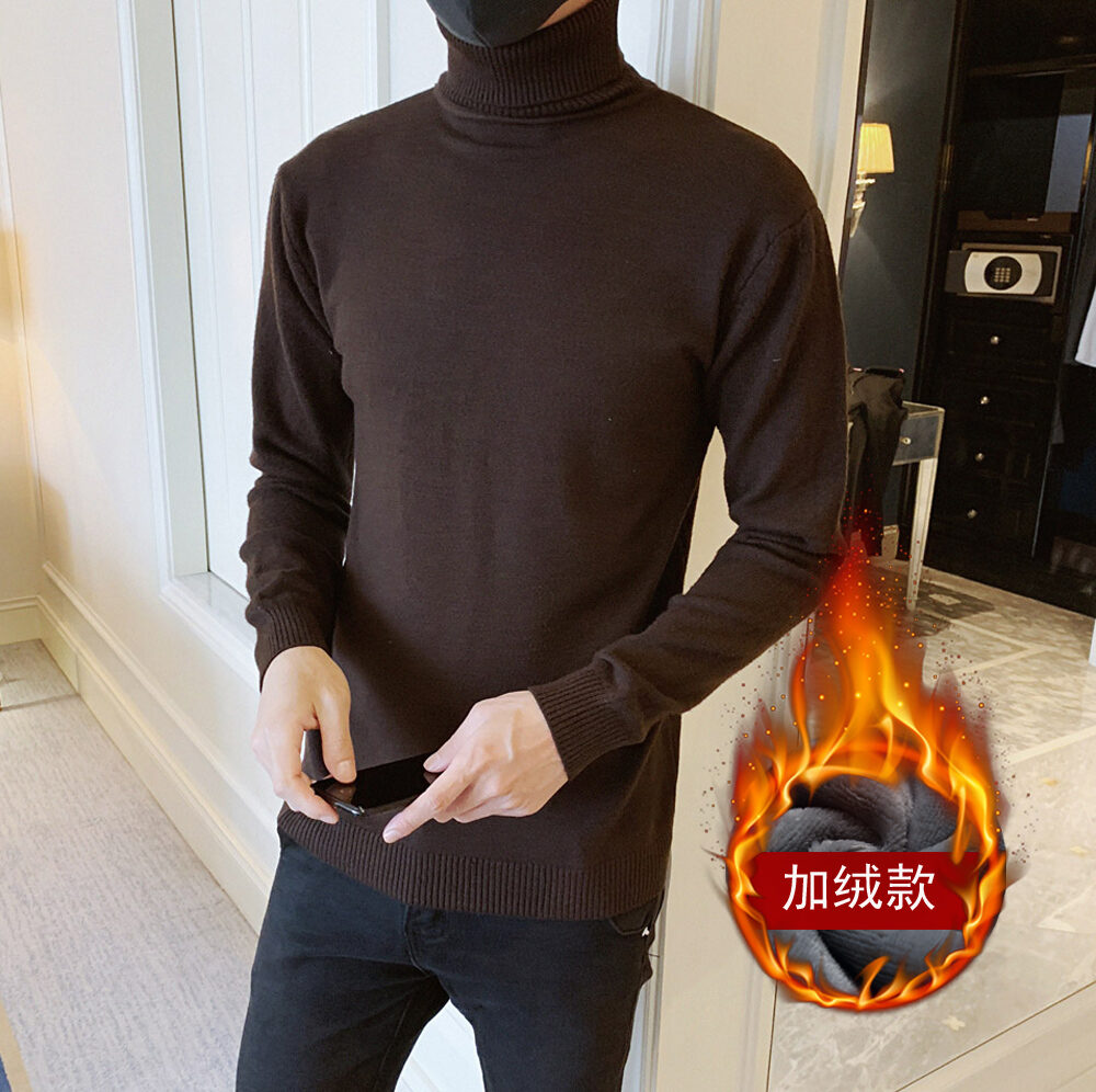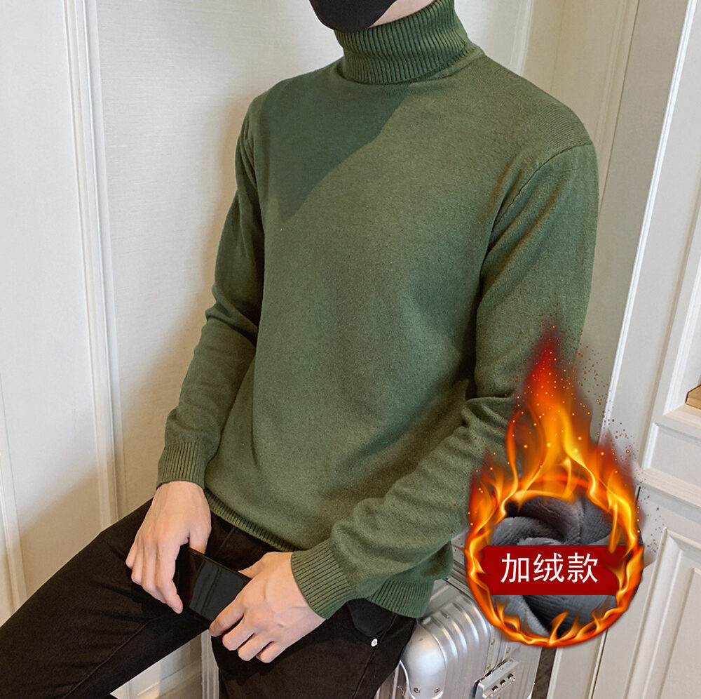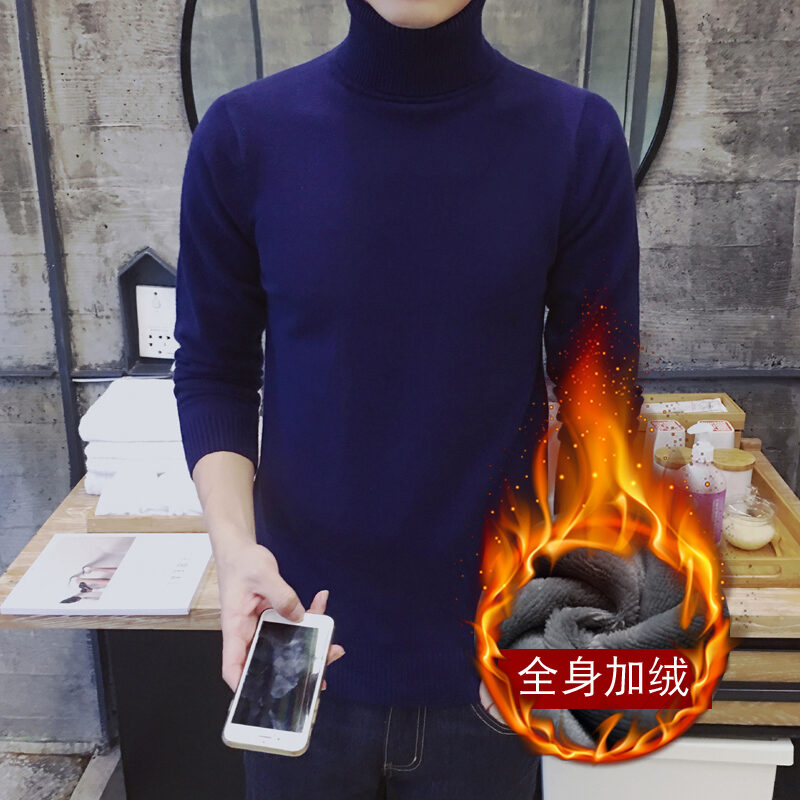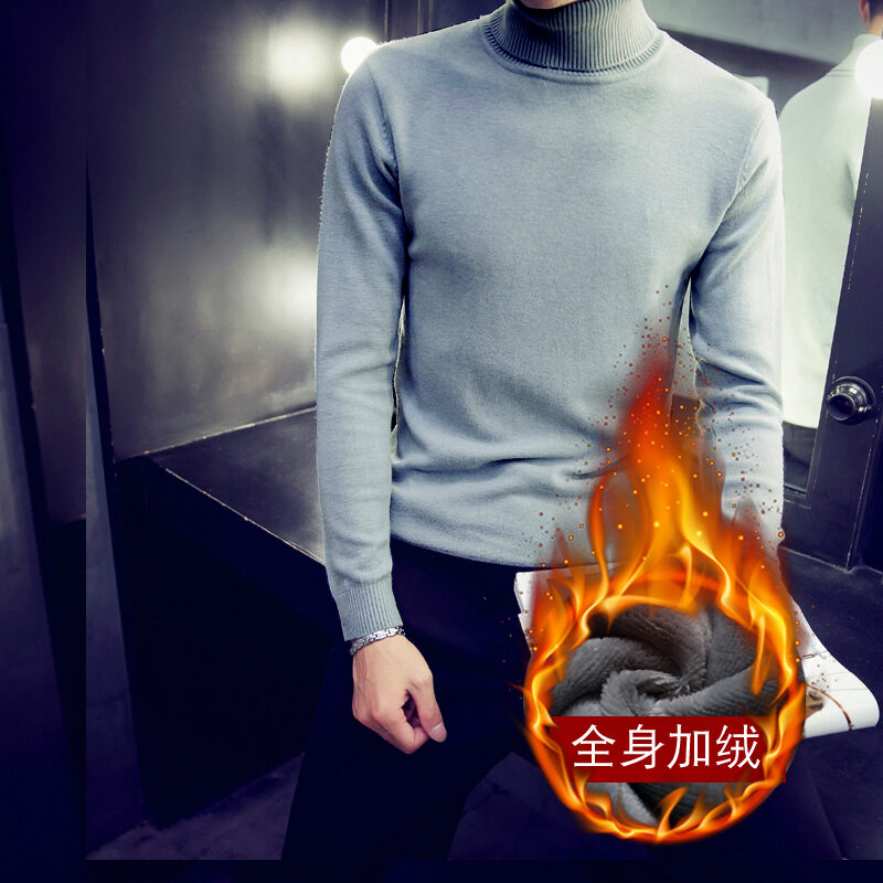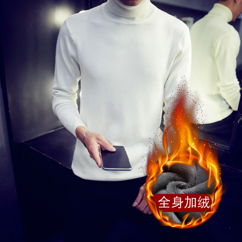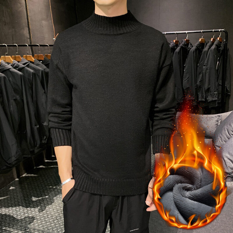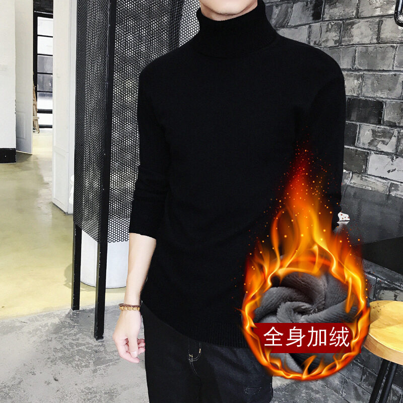 Thickened Men's Turtleneck Sweater Winter Woolen Sweater Korean Style Tight Fleece-Lined Black Bottoming Shirt Men's Clothing
