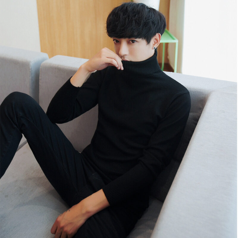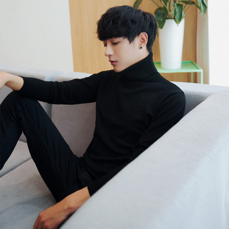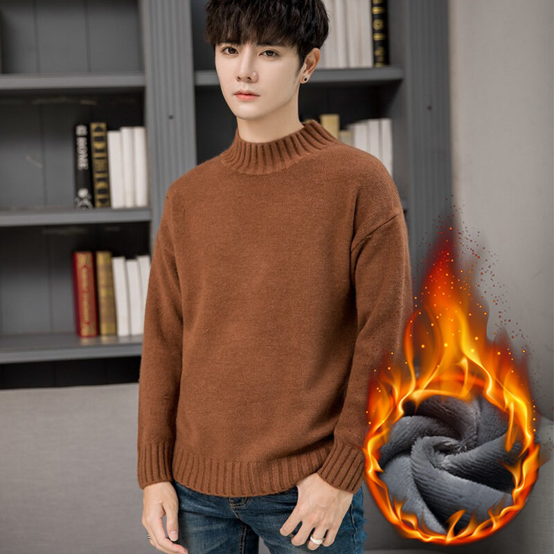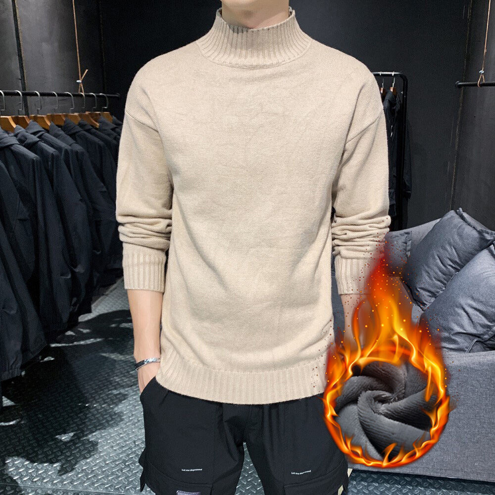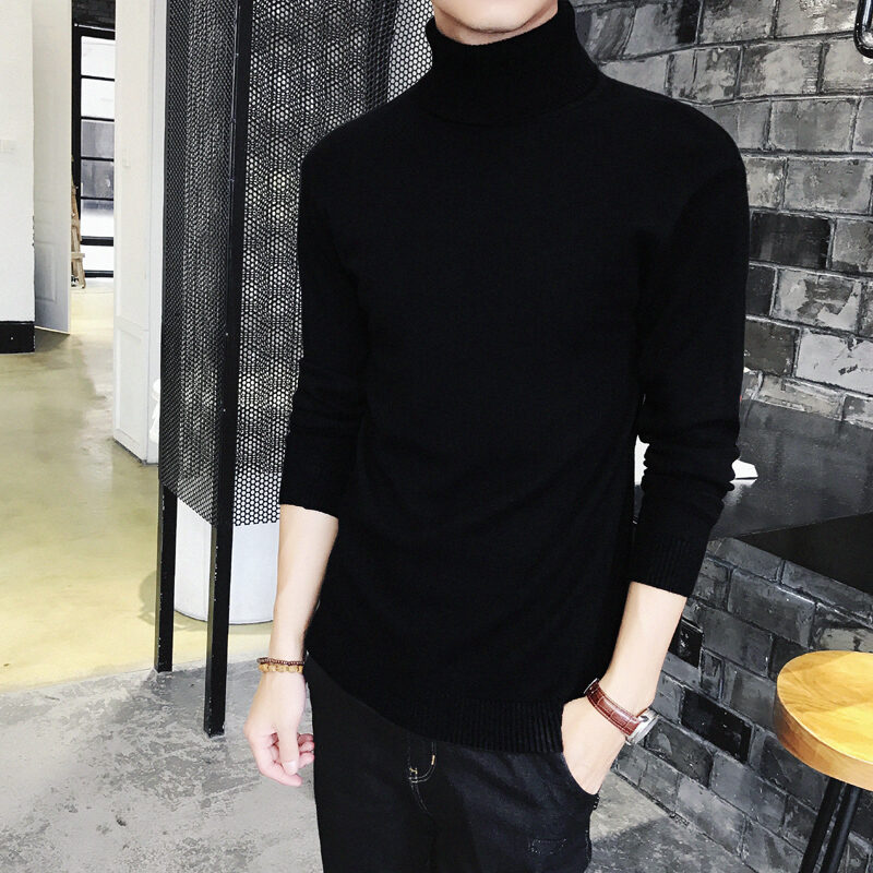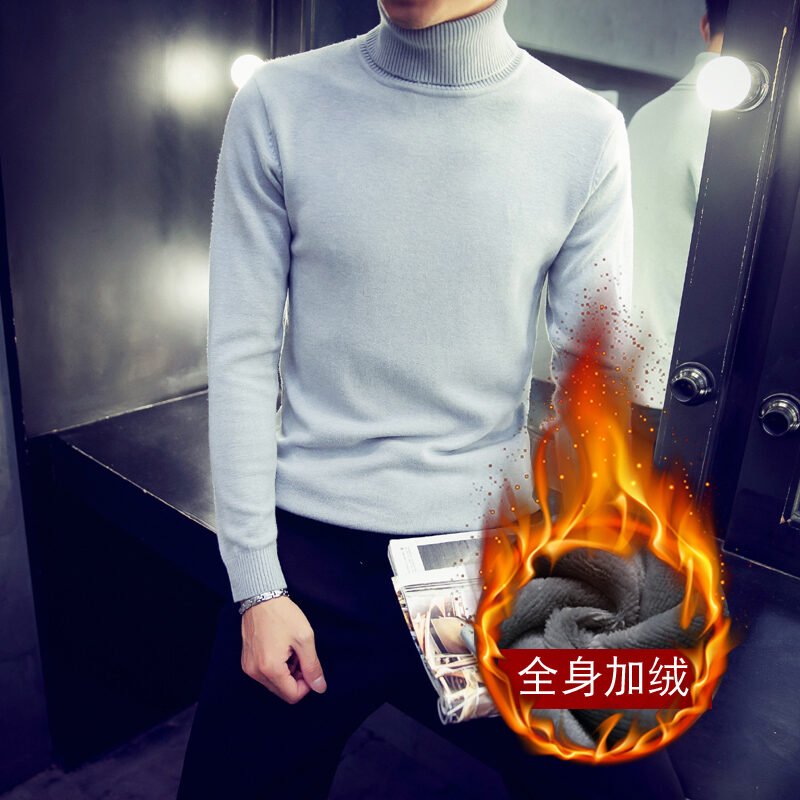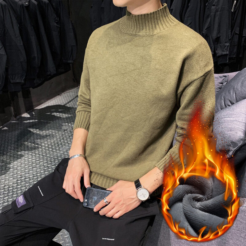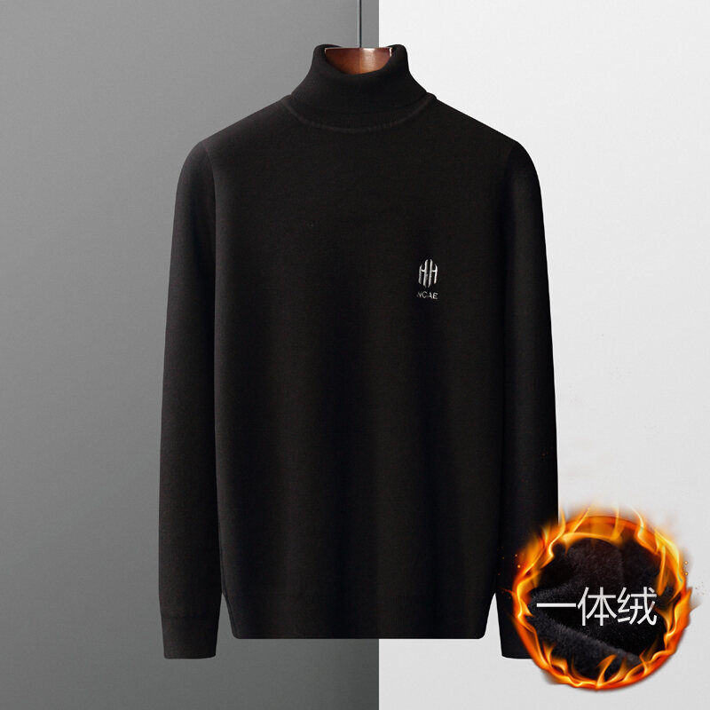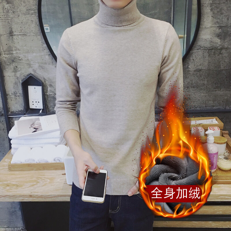 Thickened Men's Turtleneck Sweater Winter Woolen Sweater Korean Style Tight Fleece-Lined Black Bottoming Shirt Men's Clothing