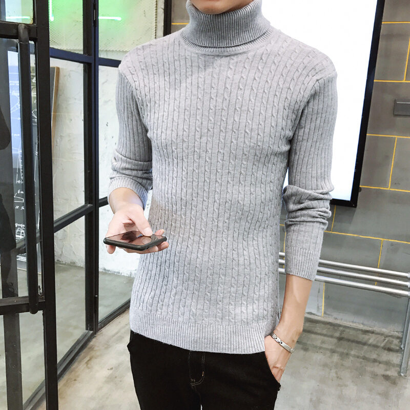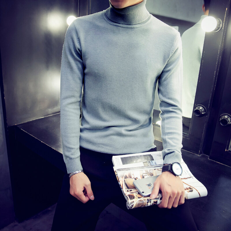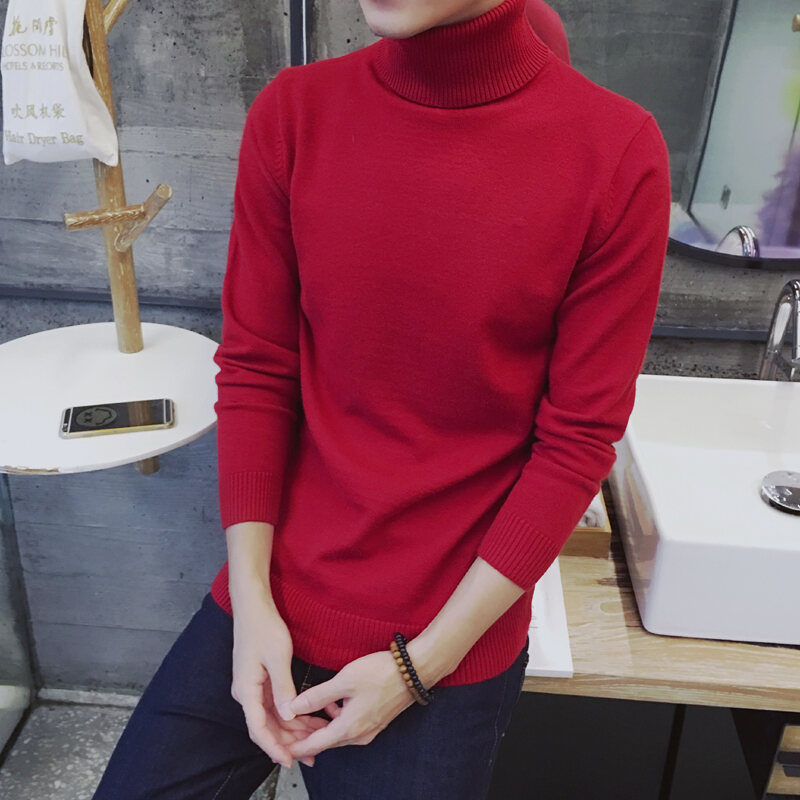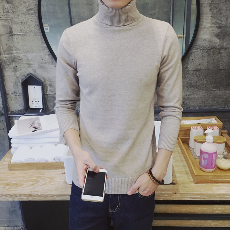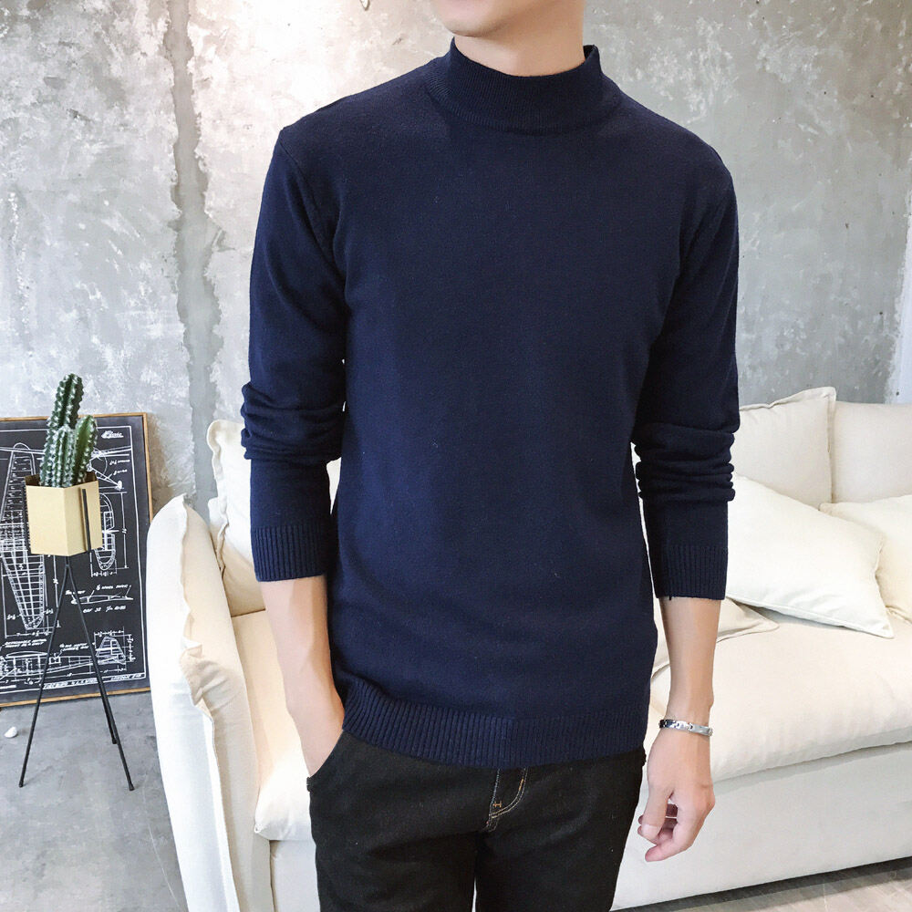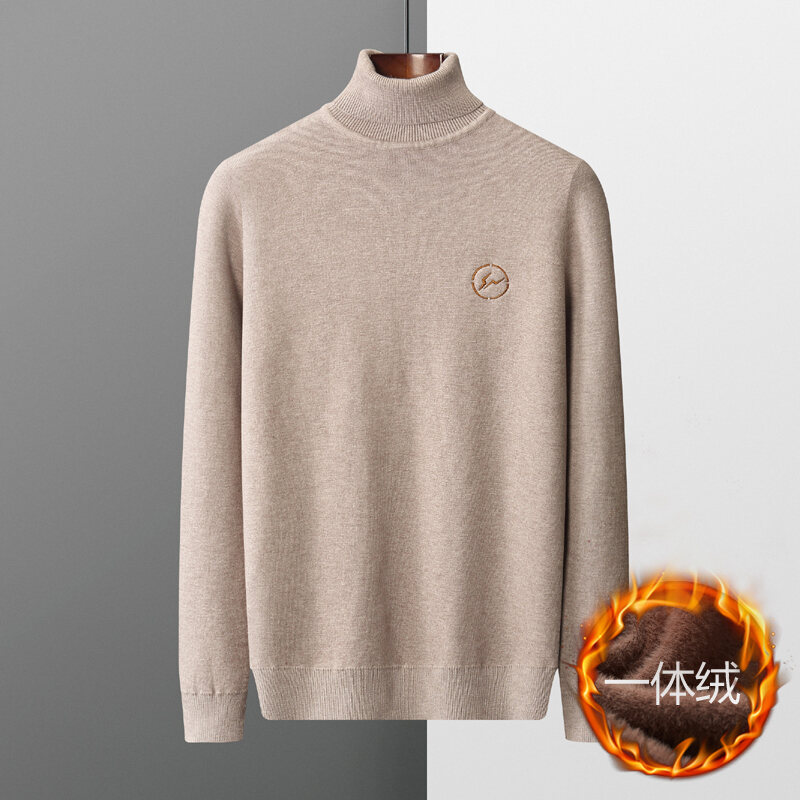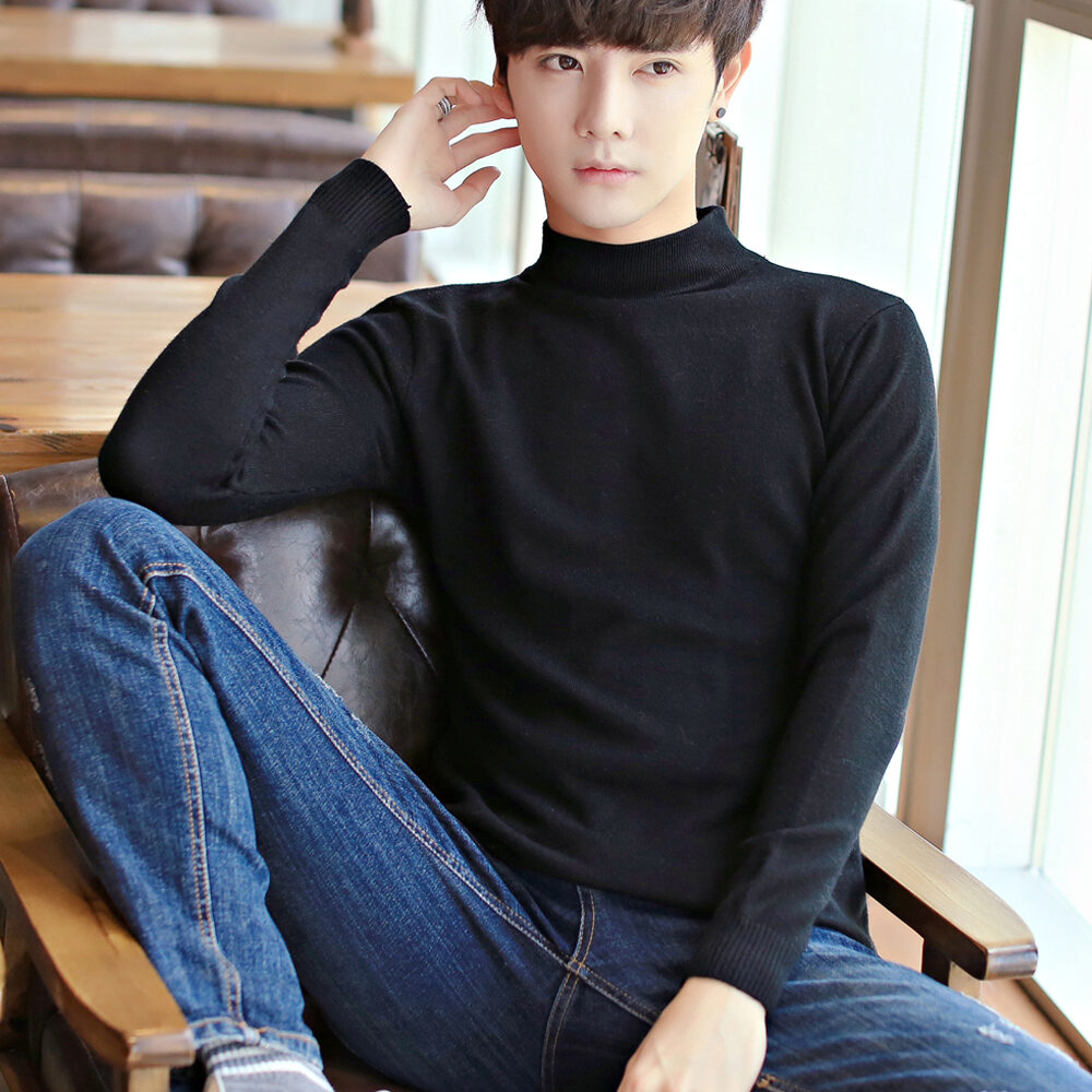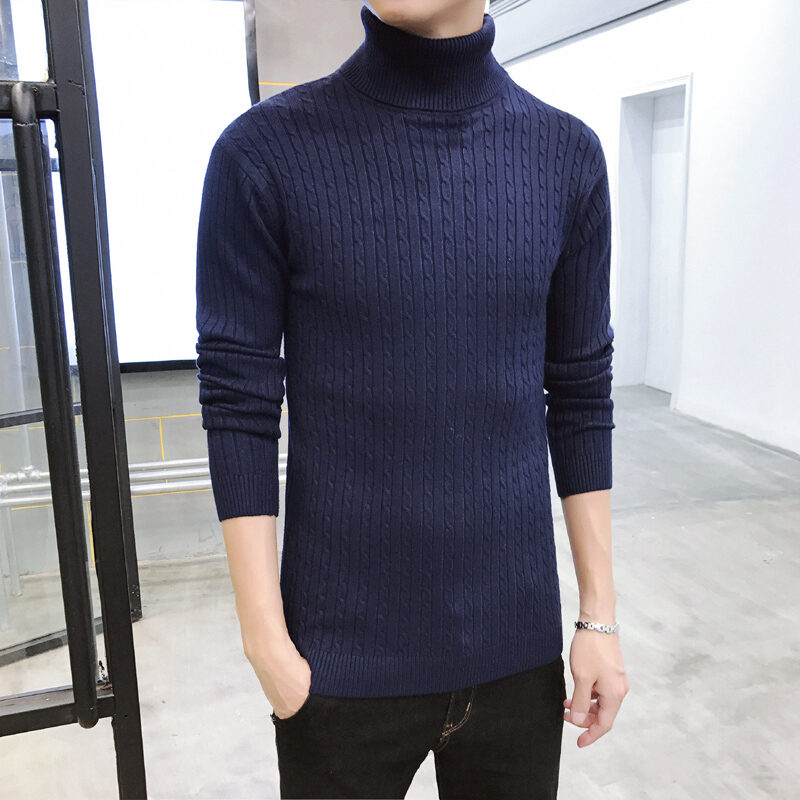 Thickened Men's Turtleneck Sweater Winter Woolen Sweater Korean Style Tight Fleece-Lined Black Bottoming Shirt Men's Clothing