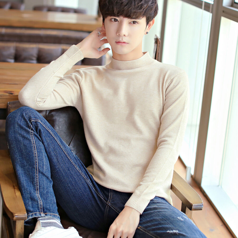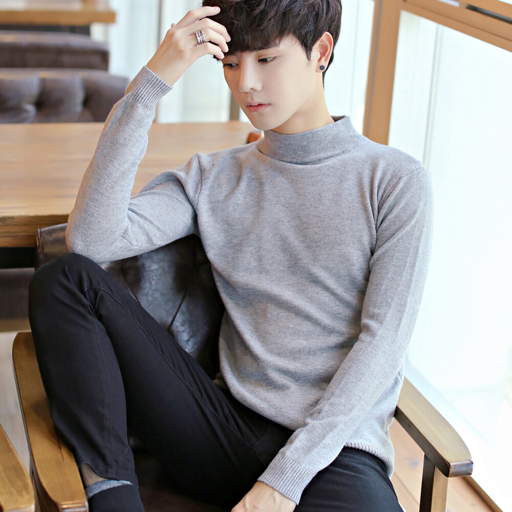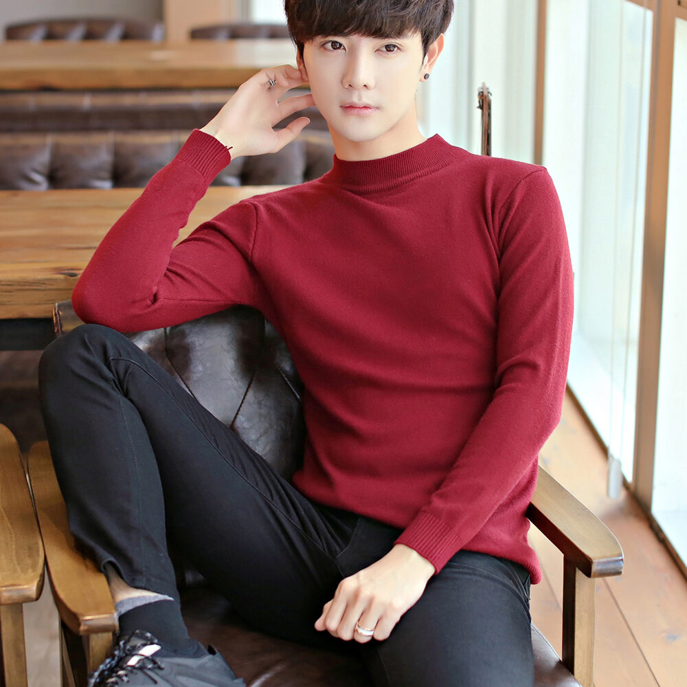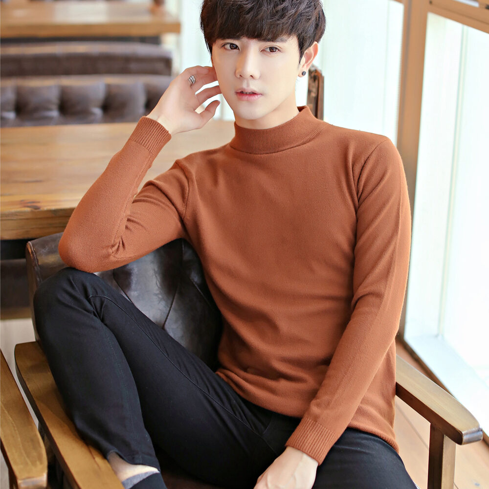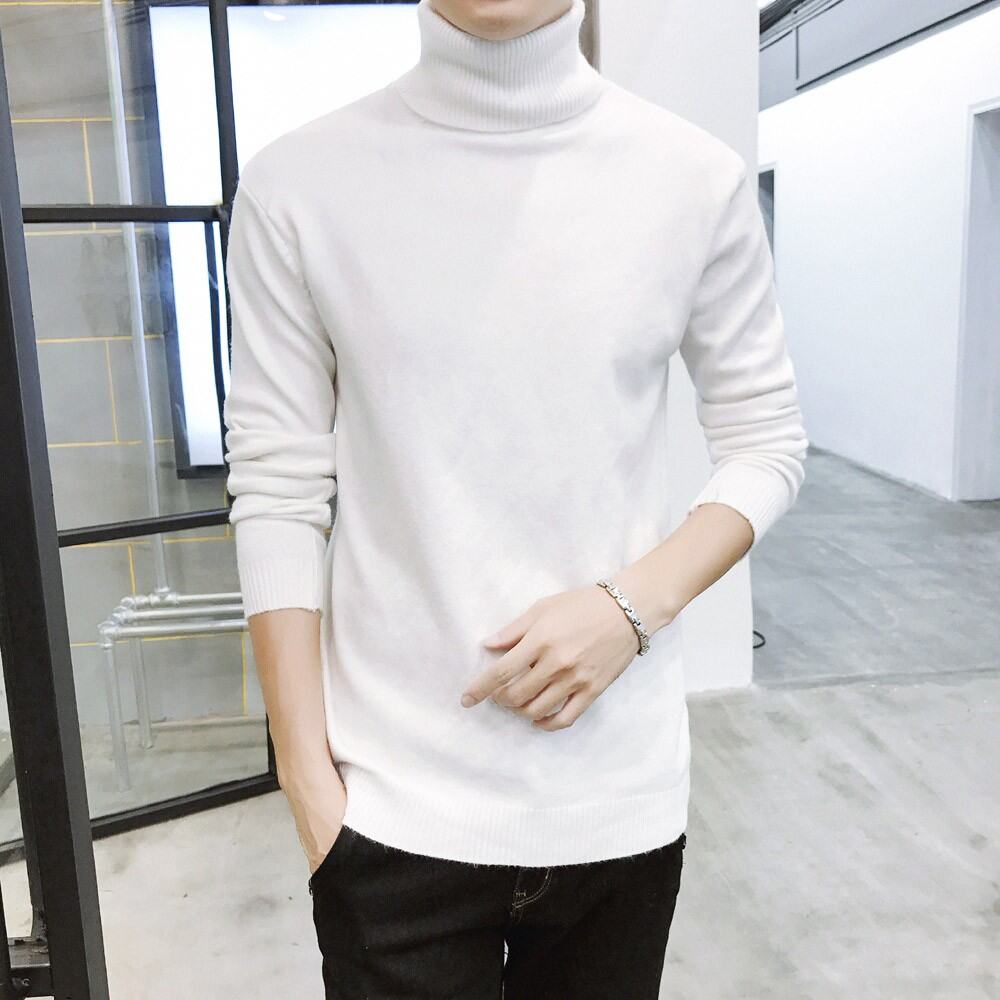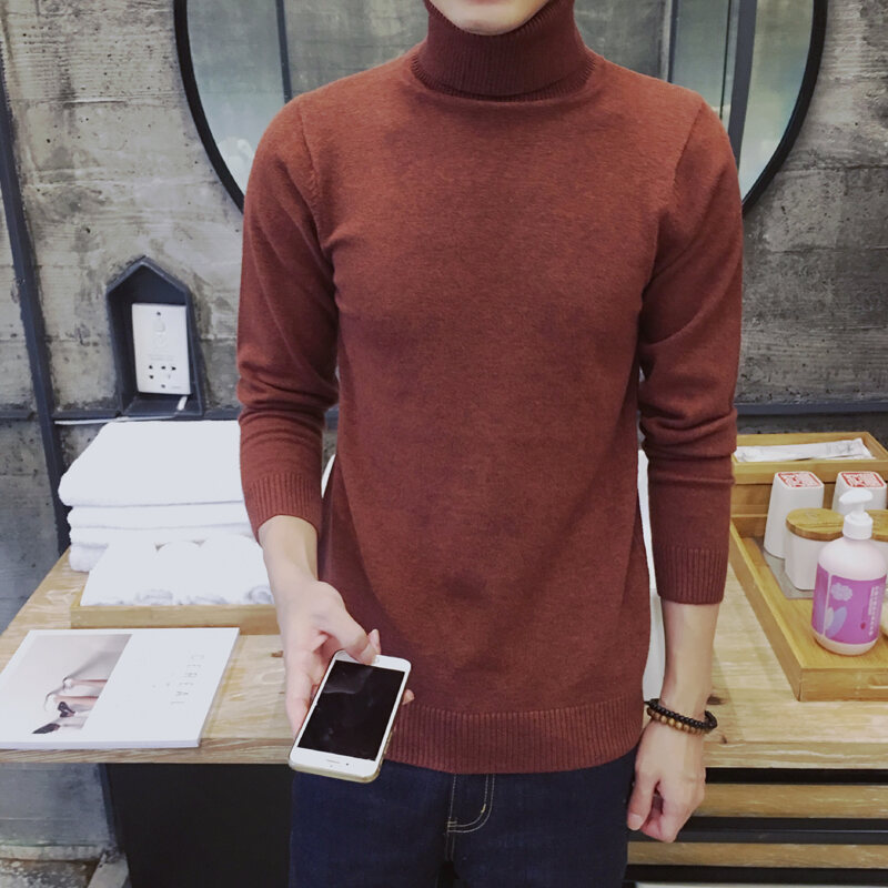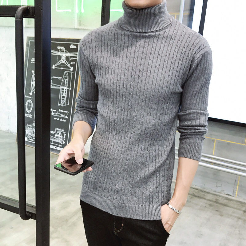 Thickened Men's Turtleneck Sweater Winter Woolen Sweater Korean Style Tight Fleece-Lined Black Bottoming Shirt Men's Clothing
