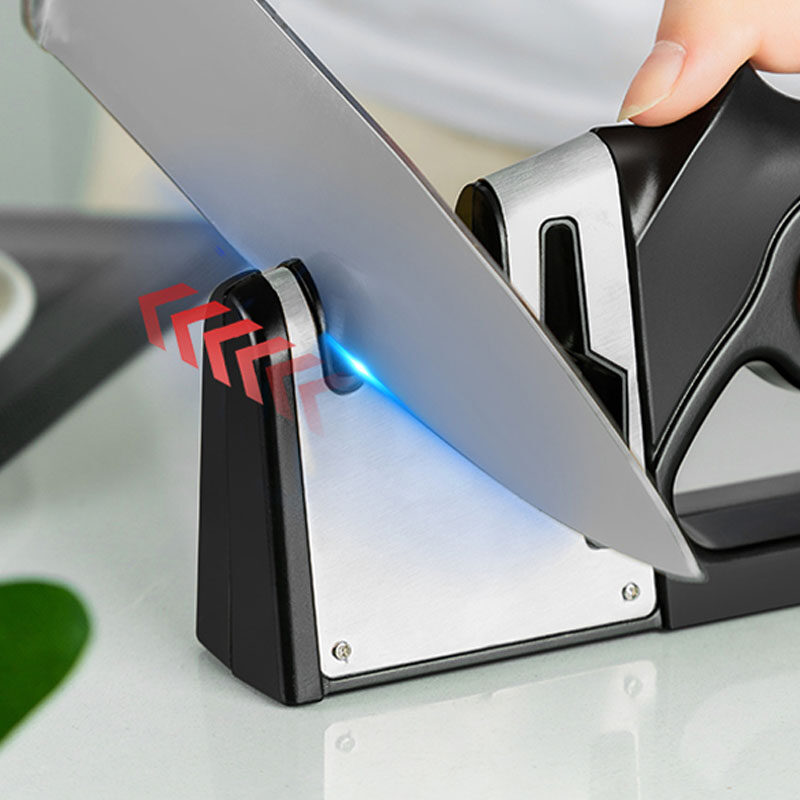 3 gears with one emery mouth/muti-tool applicable.It is suitable for daily sharpening.This step must be done to ensure that all burrs are removed with light force.The knife should be placed vertically in the "rough sharpening mouth",the operation is the same as above.