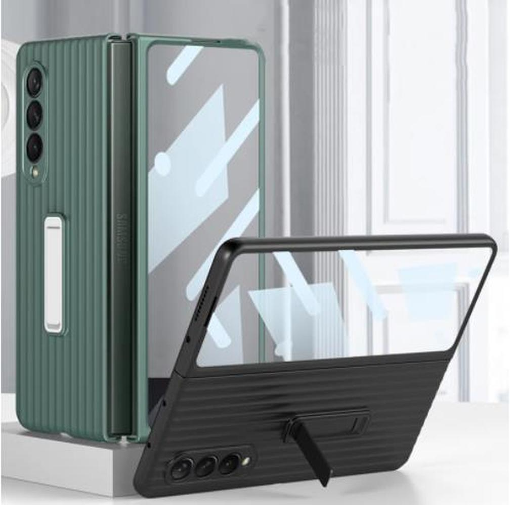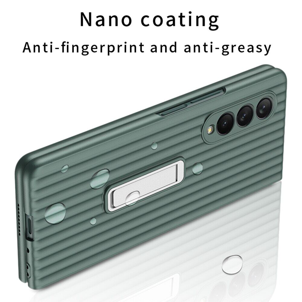 KISSCASE Magnetic Stand Vertical Pattern Mobile Phone Case with Screen Tempered Glass Film for Samsung Galaxy Z Fold 3 5G Foldable PC Hard Case