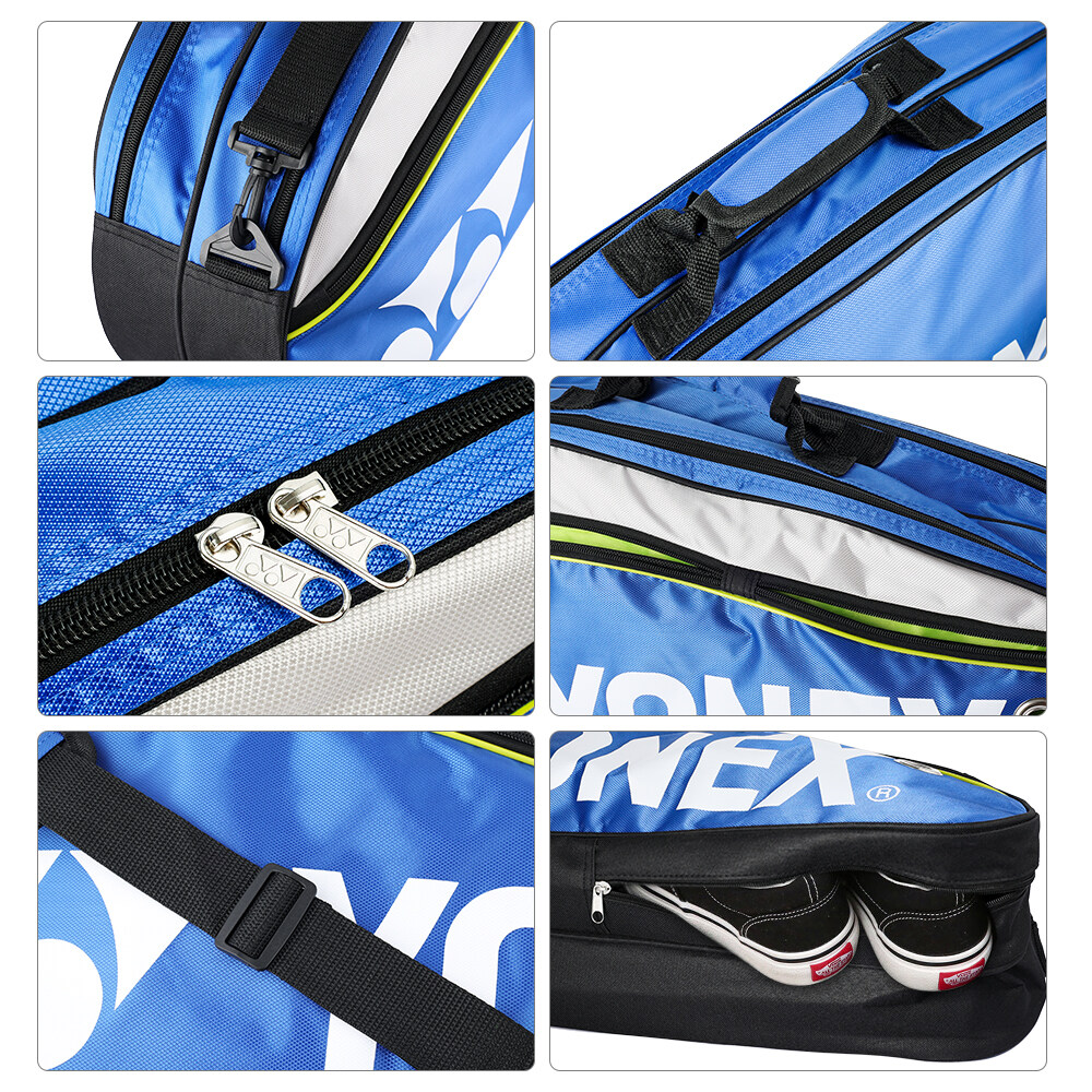 Zacro[Ready Stock] Y-onex 9332 Badminton Bag Double Zips Bag with Shoes Compartment Shoe Bag+ 2 Main Packets 2 Sides Pockets +1 Sling Straps Maximum capacity can hold 6 badminton rackets