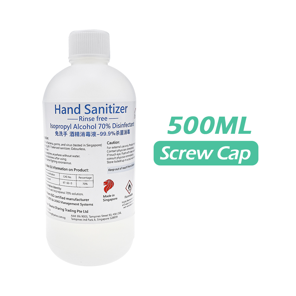 Hand sanitizer rinse free (moisturizing odourless & pH: 7)Isopropyl Alcohol Liquid disinfectant(kills 99.9% of bacteria) 500ml Screw Cap