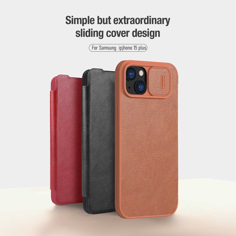 iPhone 15 14 13 / Plus / + / Pro / Max / 6.7 6.1 - Qin Leather Case Pro - Flip Casing Full Coverage Wallet Card Slot Sliding Camera Protection Shock Resistant High Quality Lens Anti Scratch Drop Impa