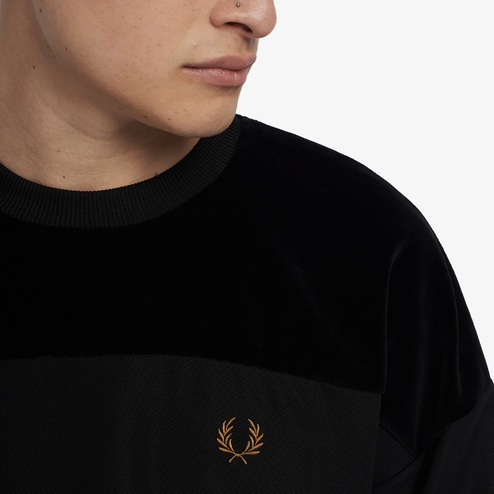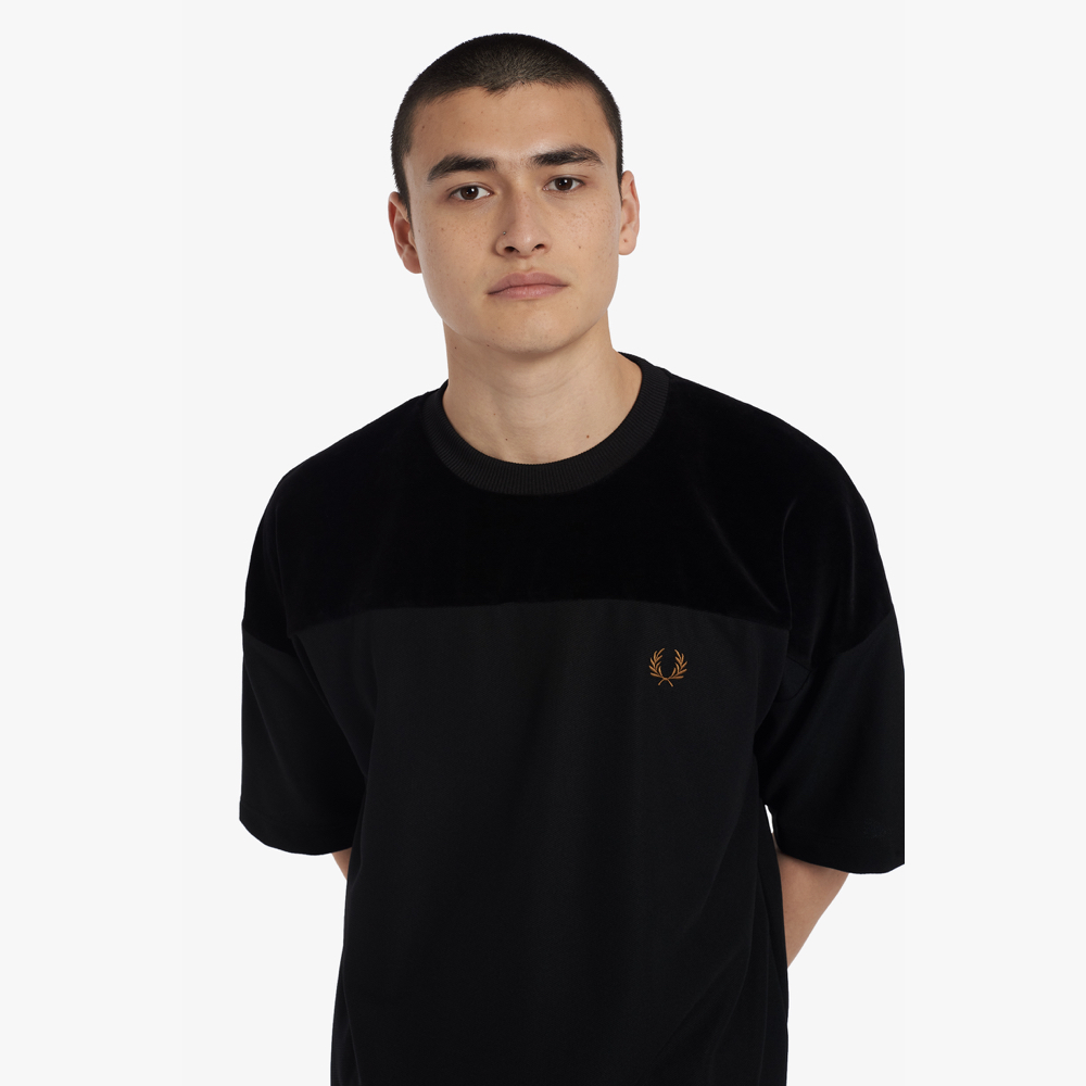 Fred Perry M2615 Velour Panel Tricot T-Shirt - (Black)
