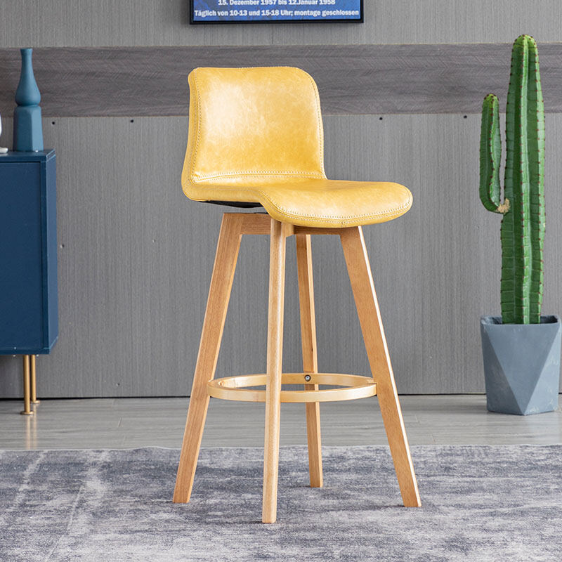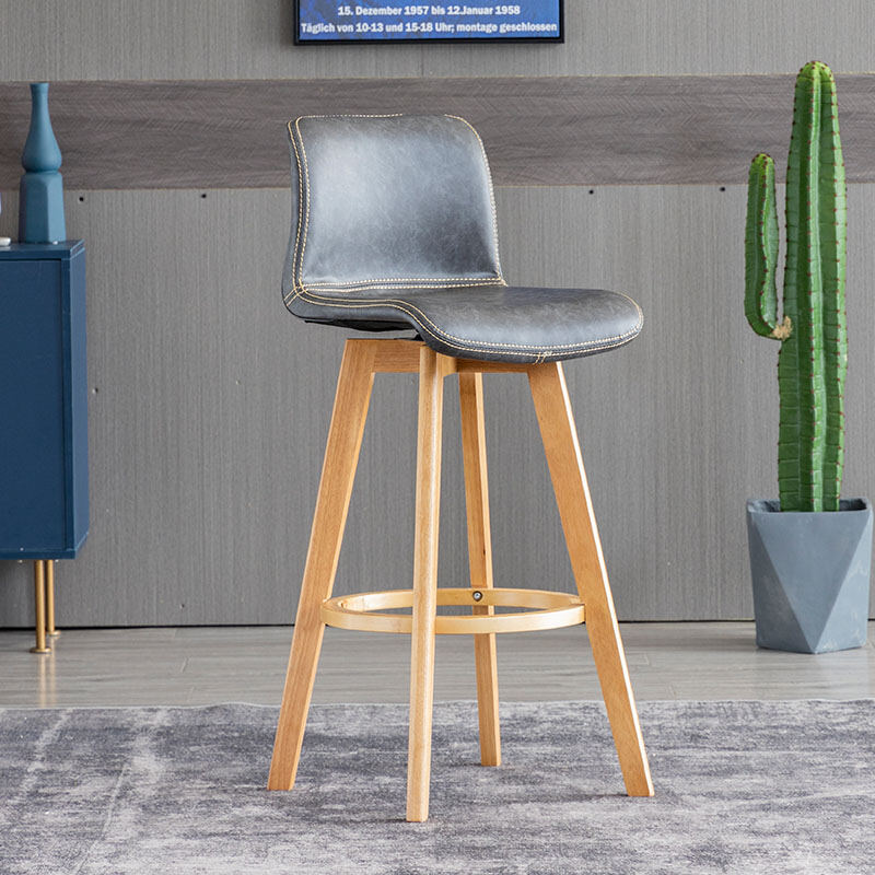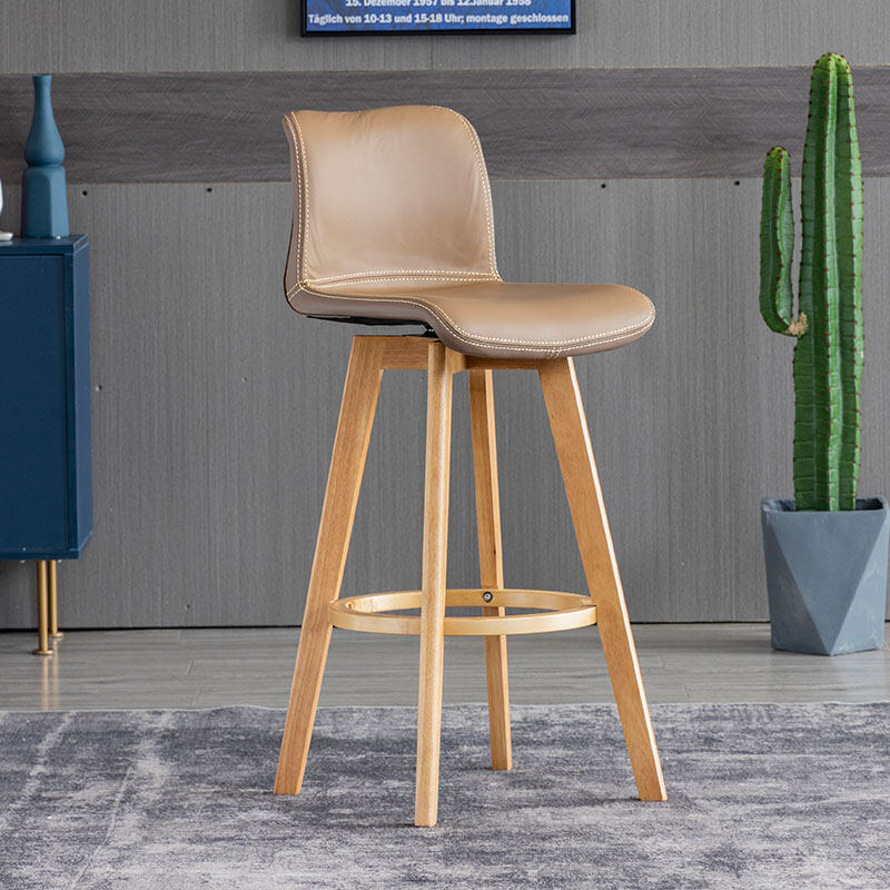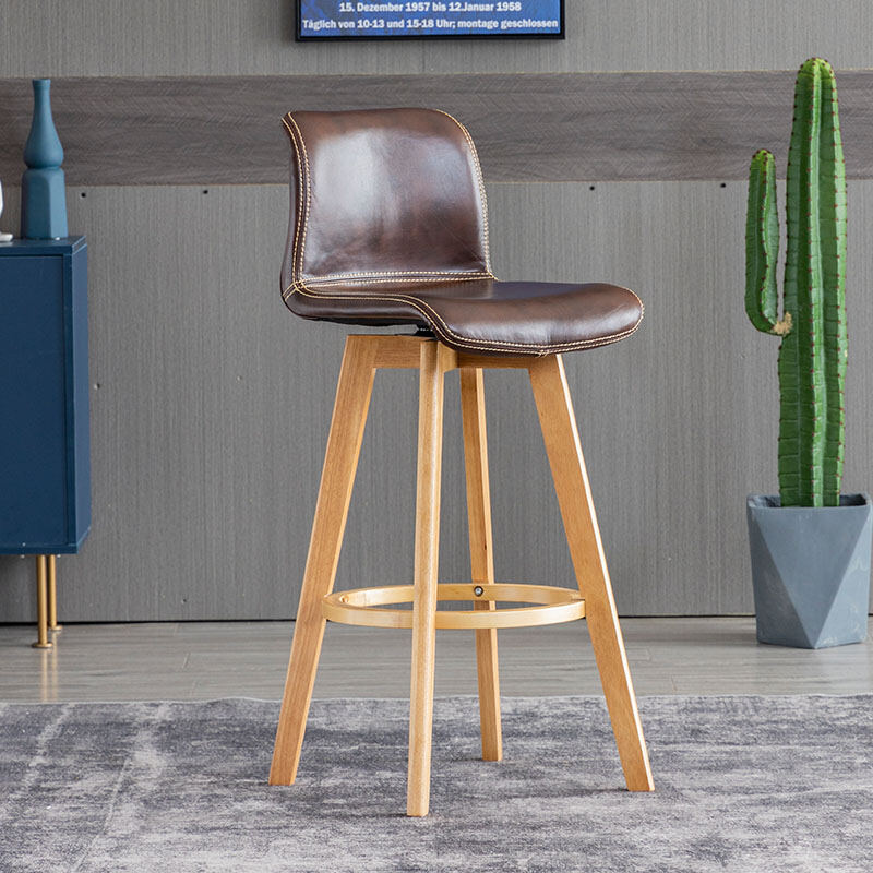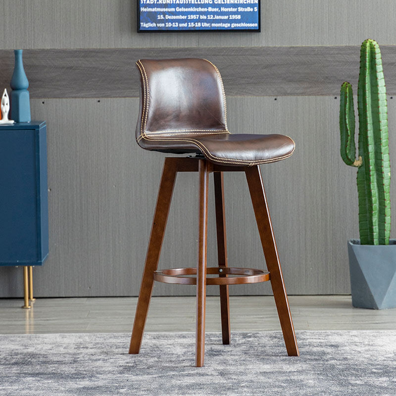 Solid Wood Bar Stool Rotating Bar Chair Front Desk High Leg Chair Creative High Leg North Tea Shop Backrest Home Bar Stool