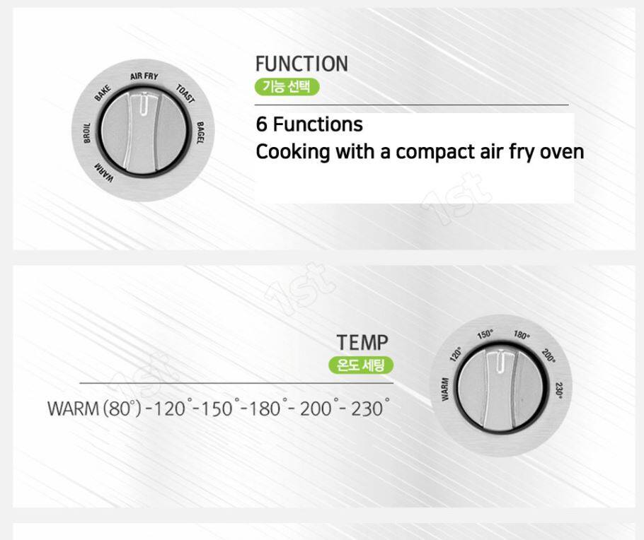 MAIN FUNCTION : Air Fryer + Convection Bake + Convection Broil + Warm + Toast + Bagel