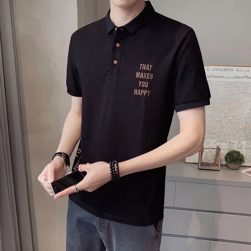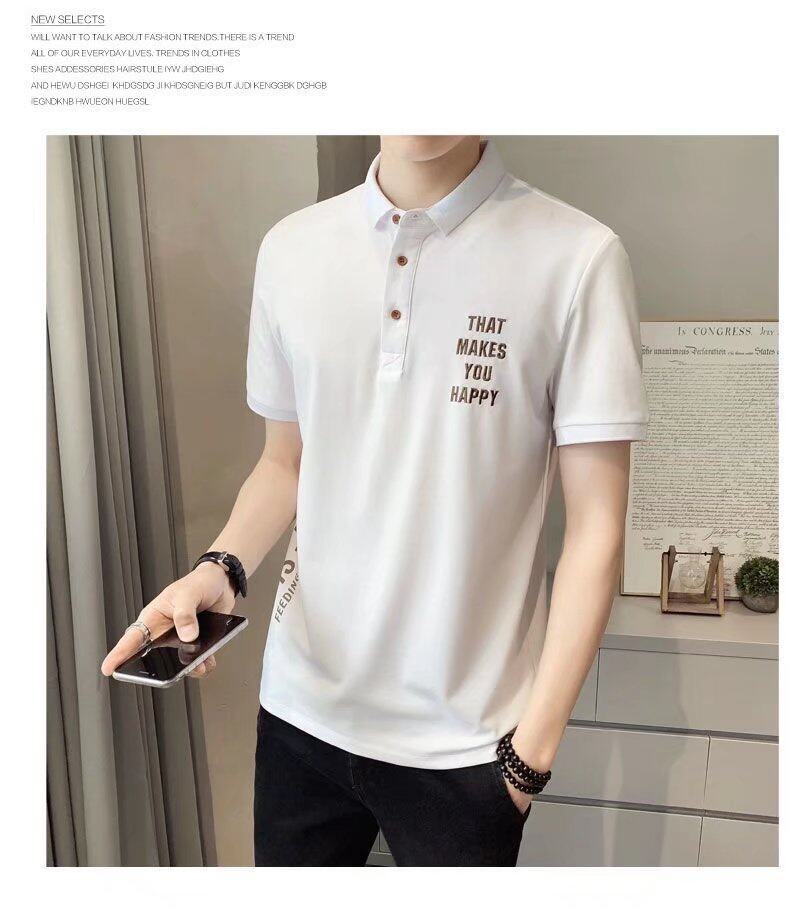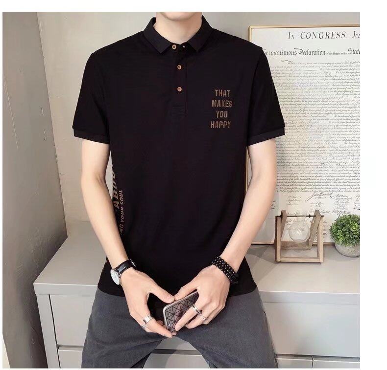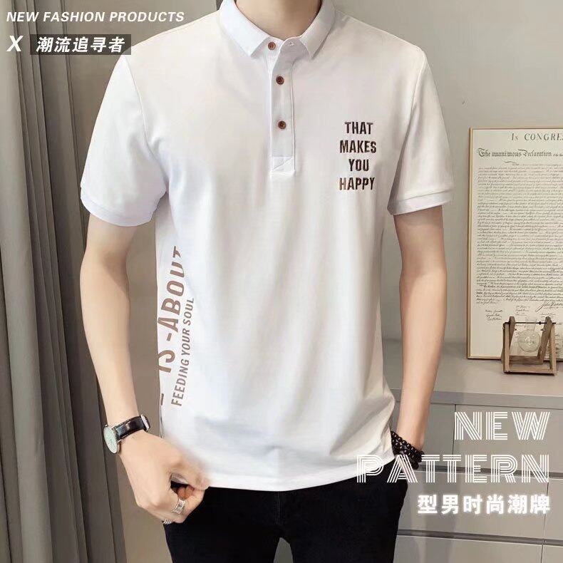 t shirt Men Polo Neck Korean Style Oversize Short Sleeve Letter Print Loose Fashion Tops Casual t-shirt