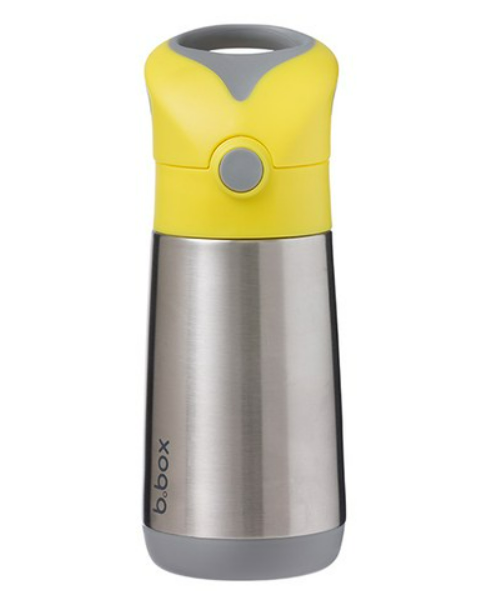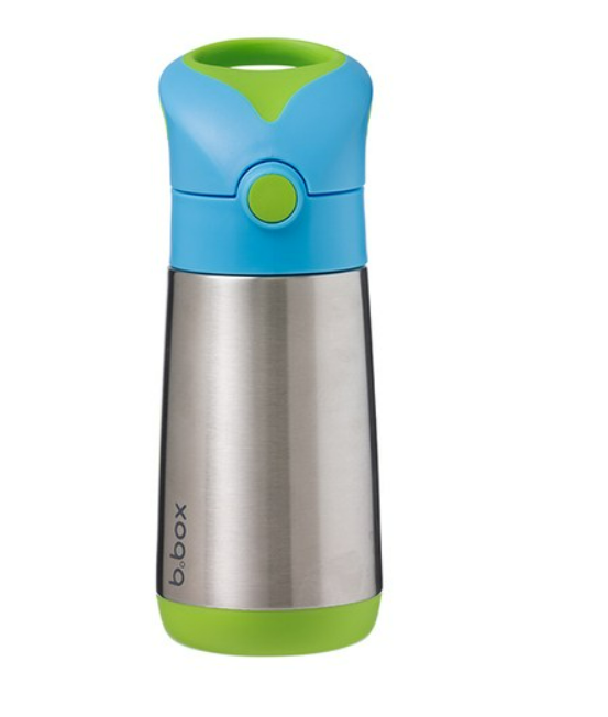 Clean modern design and big kid aesthetic. Available in six fab b.box colours. Kids love our easy drinking silicone straw top. Parents love no leaks in the bag (when the lid is closed). Replacement straw packs available, sold separately. When using to keep liquids warm - for best performance fill the stainless steel base with hot water for a few minutes to warm it before pouring water out - and filling with warm liquids.