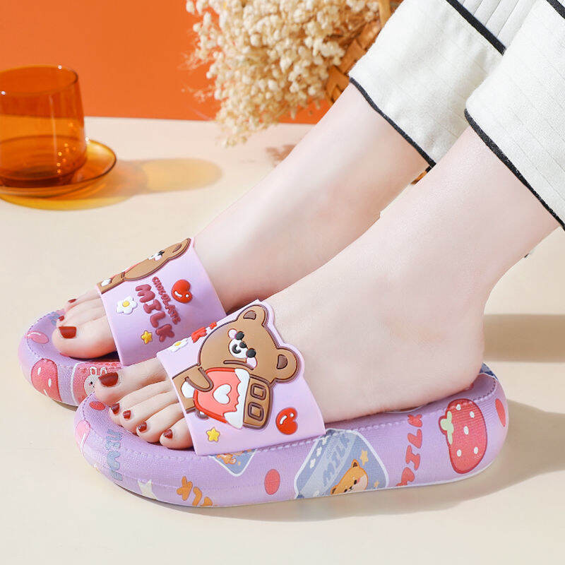 High Heel Slippers for Women Summer Home Korean Style Student Cartoon Cute Bear Bathroom Slippers Non-slip Soft Bottom Outer Wear