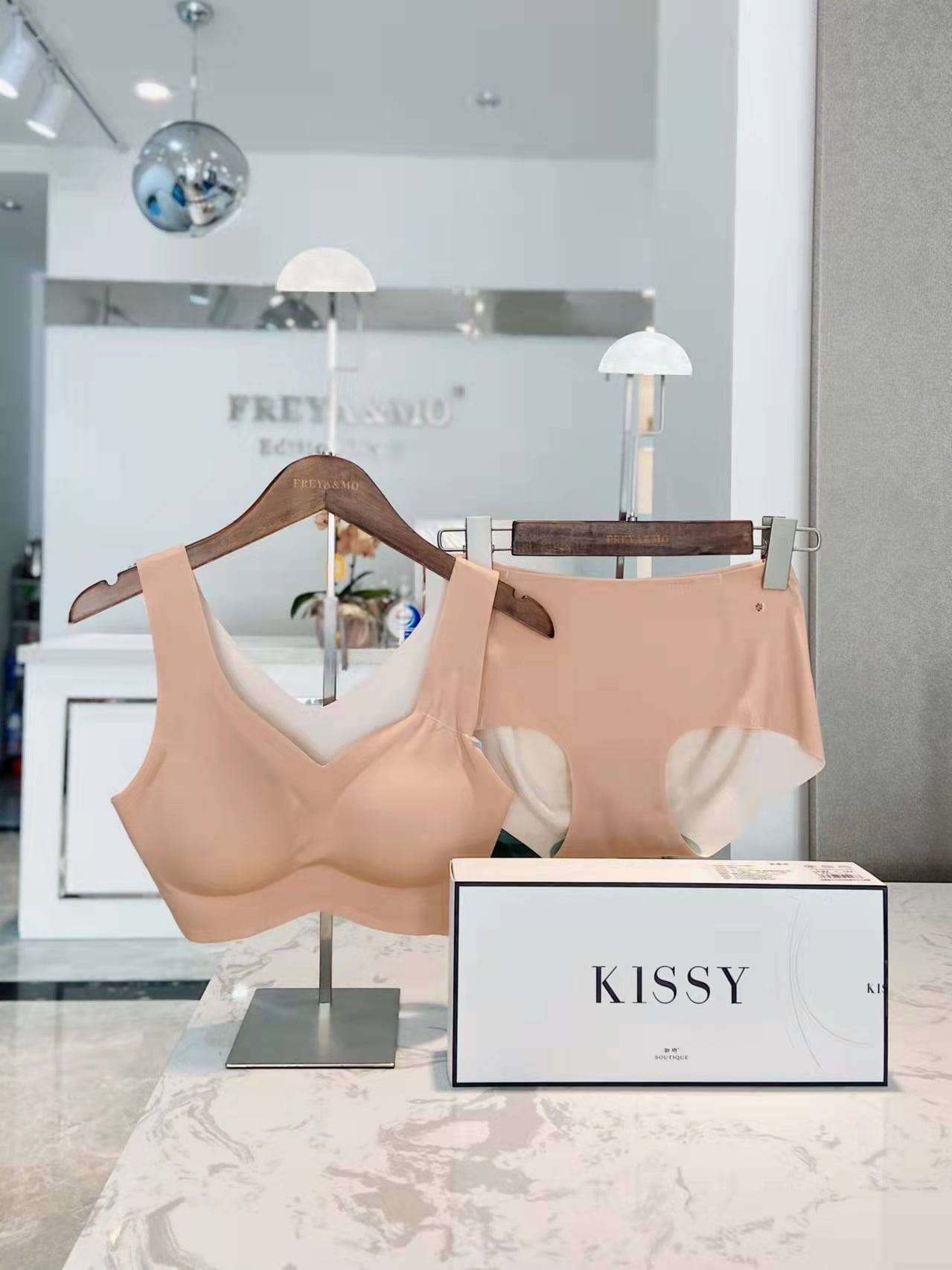 One set includes: Bra, thin chest pad, thick chest pad, Panty, dust bagDifferences between new and old kissy modelsFabric:The old vest is 100 pieces of modal + high elastic silk nylon.The sling is dry cool silk nylon"Jinkang yarn and Lycra spandex" are added on this basis.️Body sensation:Vests are very skin friendly.The old sling style is slippery and cool, which makes it more comfortable in summer or sports.Because the fabric upgrade of the new sling is different from before, it has no cold silk effect and is more skin friendly, which is more durable than the old one.️Coasters: all have a pair of thin and thick chest cushions.The old thick coaster is a separate style.The new style is "even Cup". The left and right coasters are connected in the middle, so the gathering effect will be better. The thick mat material is added with constant temperature fiber ball on the original basis to adapt to temperature regulation and make it more comfortable.️Quantum chip and negative ion functionThe old underwear has quantum chip and local negative ion coating.The new upgrade does not have a quantum chip, and it is a complete set of negative ions.Fabric upgrade the newly added fabric Jinkang yarn has the functions of microcirculation and negative ion release, and it is "exclusive license of patented products", because the two functions are similar. Finally, Jinkang yarn was used to replace quantum chip. It can also avoid the metal reaction that may appear because the old quantum chip has passed the security inspection. Replace the previous local negative ion effect with a whole set of negative ions.️The newly upgraded products are made of super fine yarn yarn with high density, so the sand feeling of cloth surface can be displayed. Generally, sand thread can not do this effect, and basically, the high-end brands in the market will use this technology.The upgrading of a product is based on careful consideration, material selection and process design, as well as market research. If you want to stand out in the same kind of products, you need to differentiate from the market.This process can make the overall light sense of the product more high-end, and the wearing experience more comfortable and breathable, and can also better solve the problem of gathering effect.