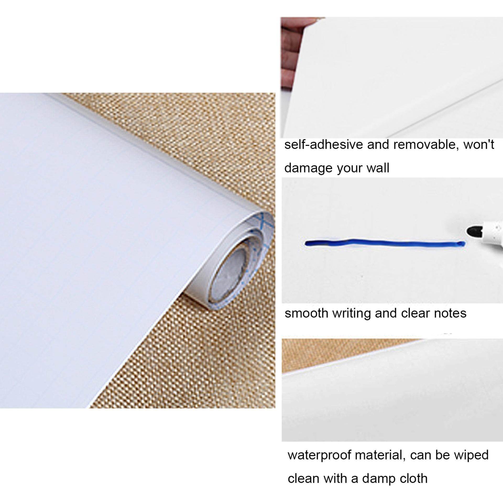 45 x 200cm Extra Large Self-Adhesive Whiteboard Wall Decal Sticker Paper Board With Marking Pen for Kids Office School Home (White)