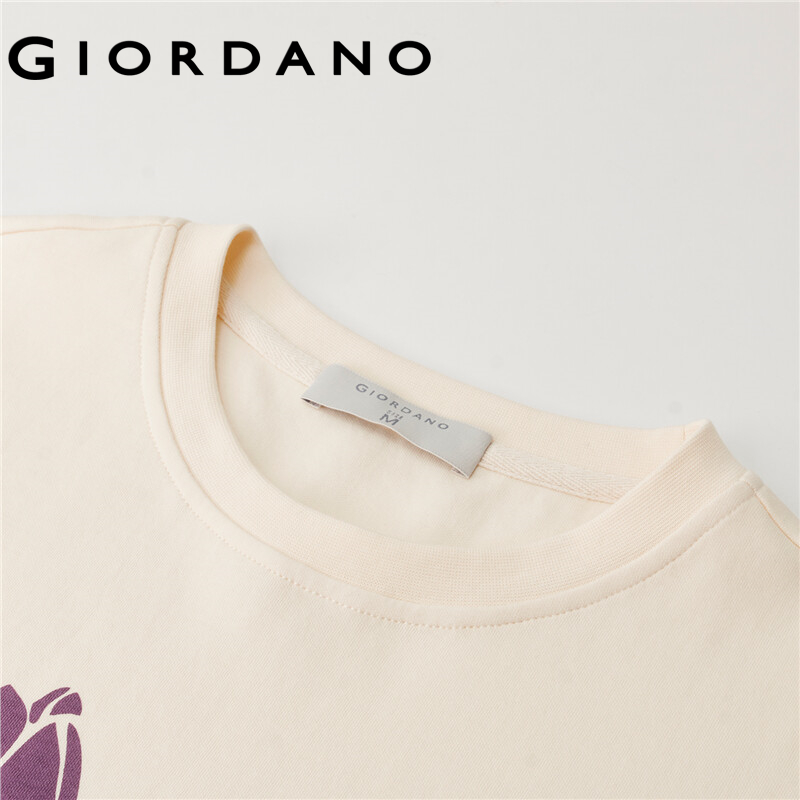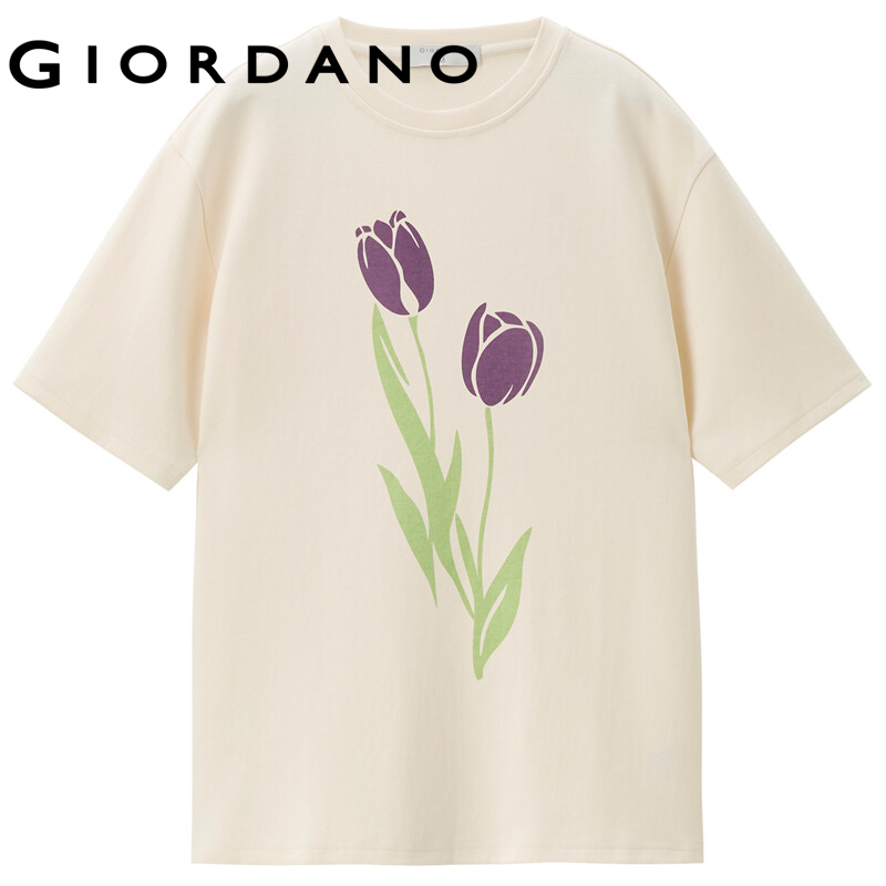 GIORDANO Women T-Shirts Tulips Flower Print Oversize Loose Casual T-Shirts Crewneck Short Sleeve Summer Relaxed Tee 18322602