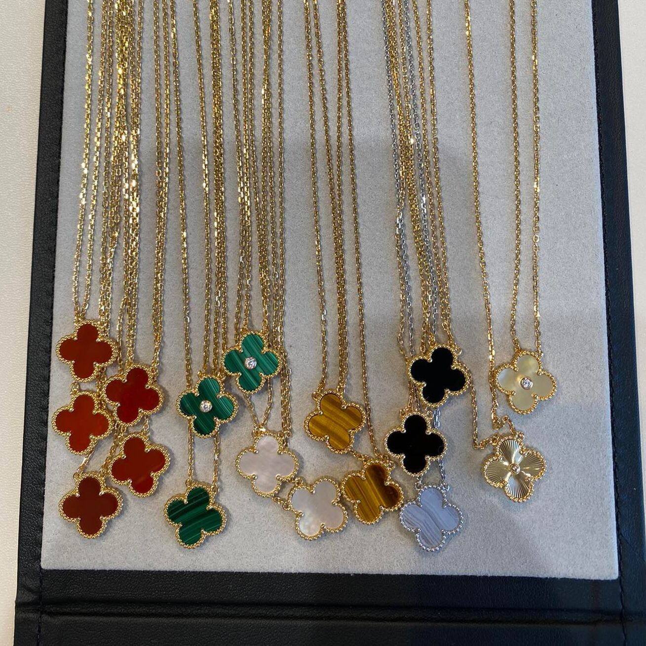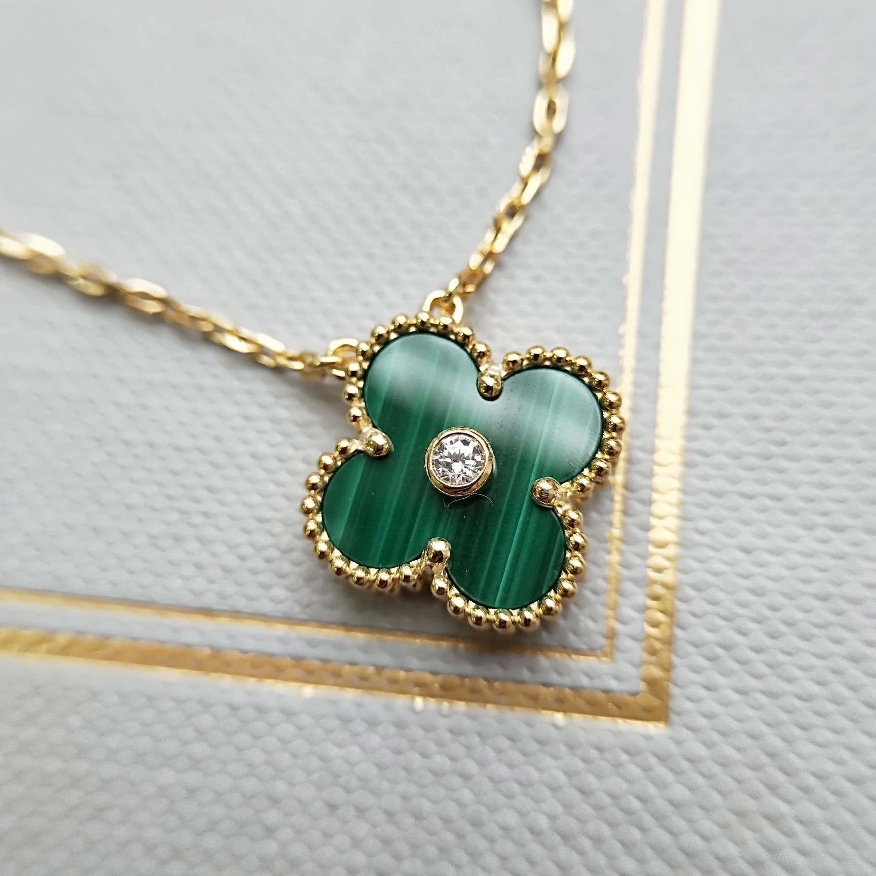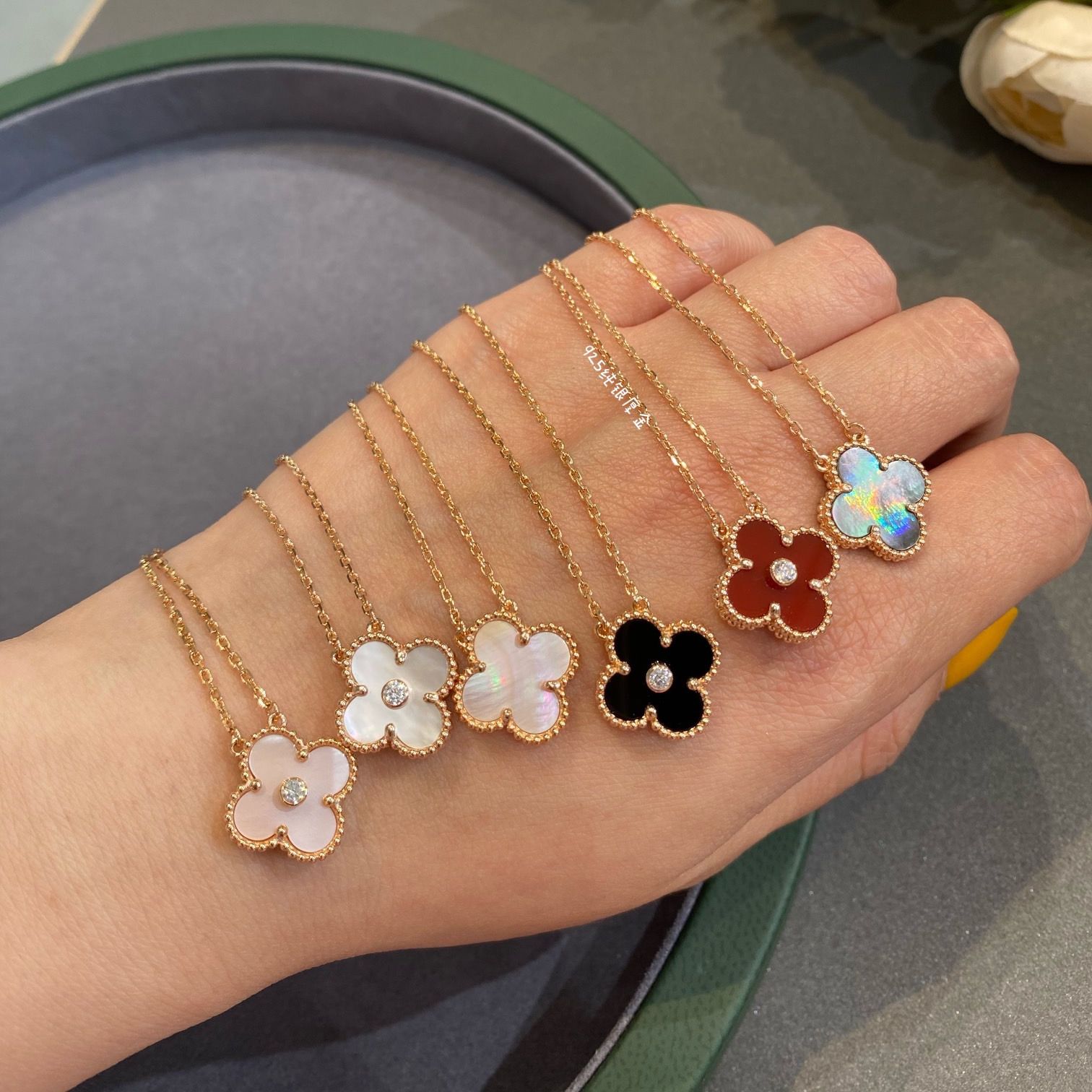 [Hot Sale] Four Leaf Clover Collection Vintage Flower Pendant Necklace With Single Shiny Round Diamond for Women Korean Clavicle Chain Pendant Necklace