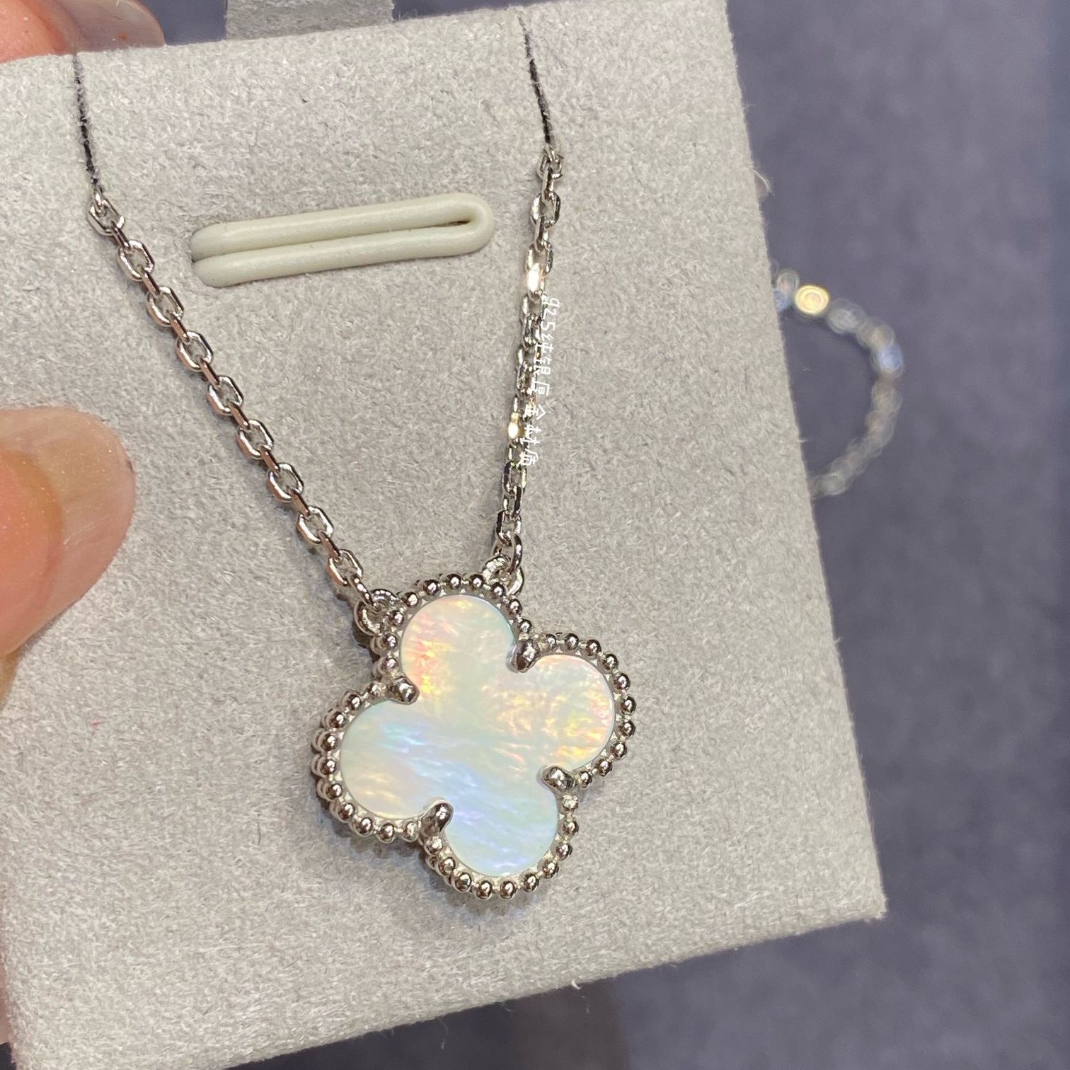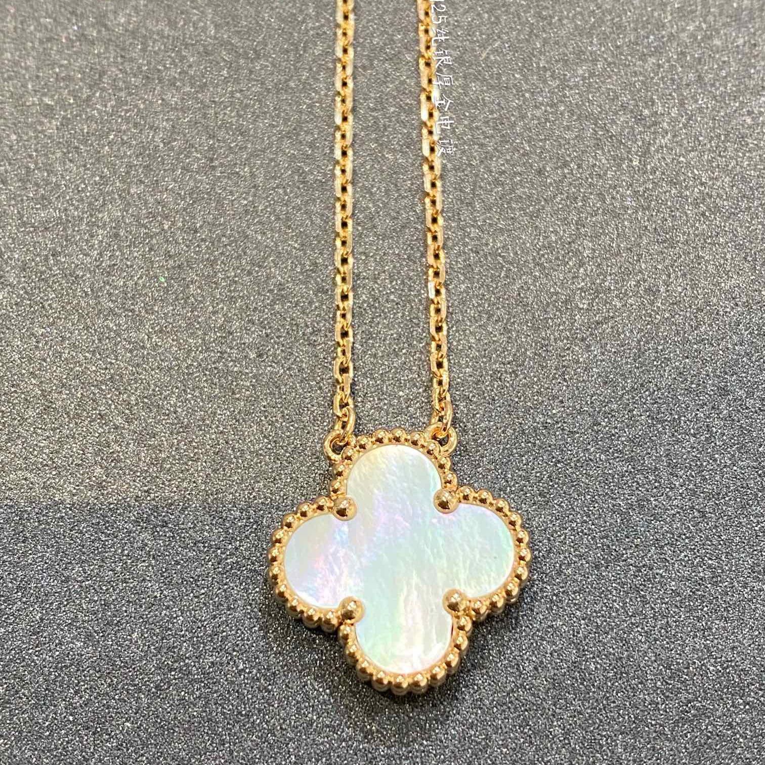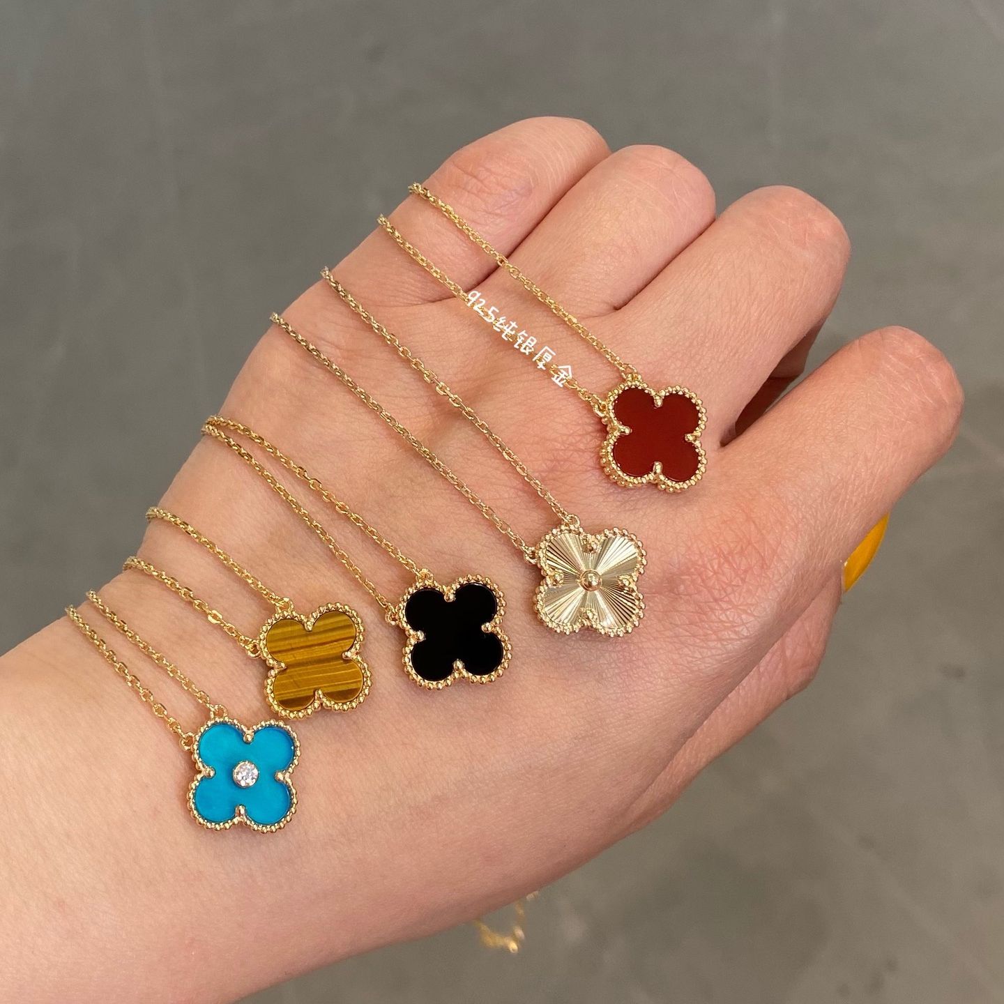 [Hot Sale] Four Leaf Clover Collection Vintage Flower Pendant Necklace With Single Shiny Round Diamond for Women Korean Clavicle Chain Pendant Necklace