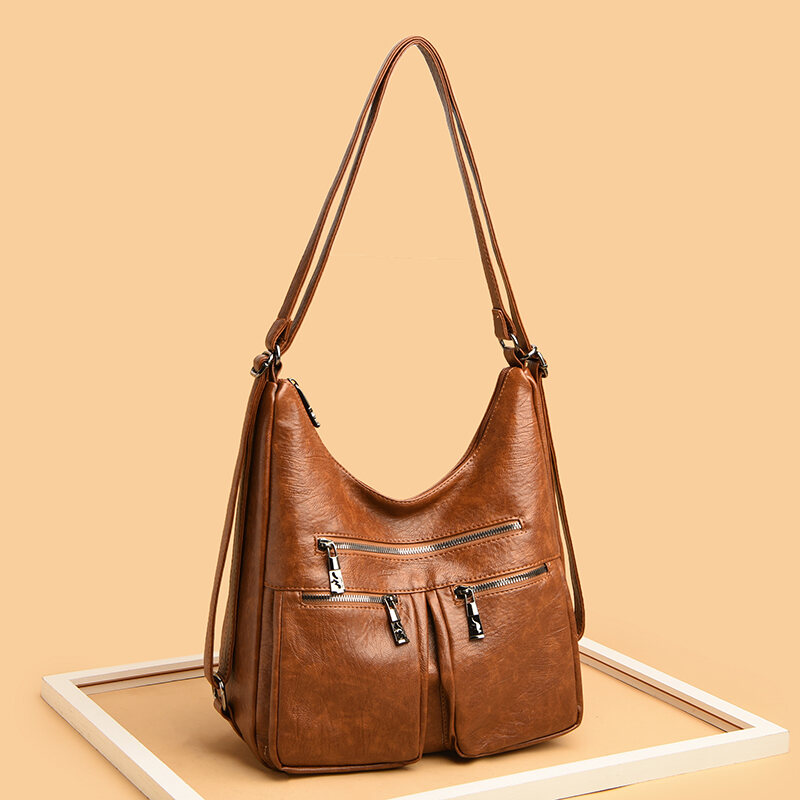Genuine Leather Middle-Aged Women's Bag Large Capacity Soft Leather Mother Mother-in-Law Bag 2022 New Shoulder Backpack Dual-Use Bag Crossbody Bag
