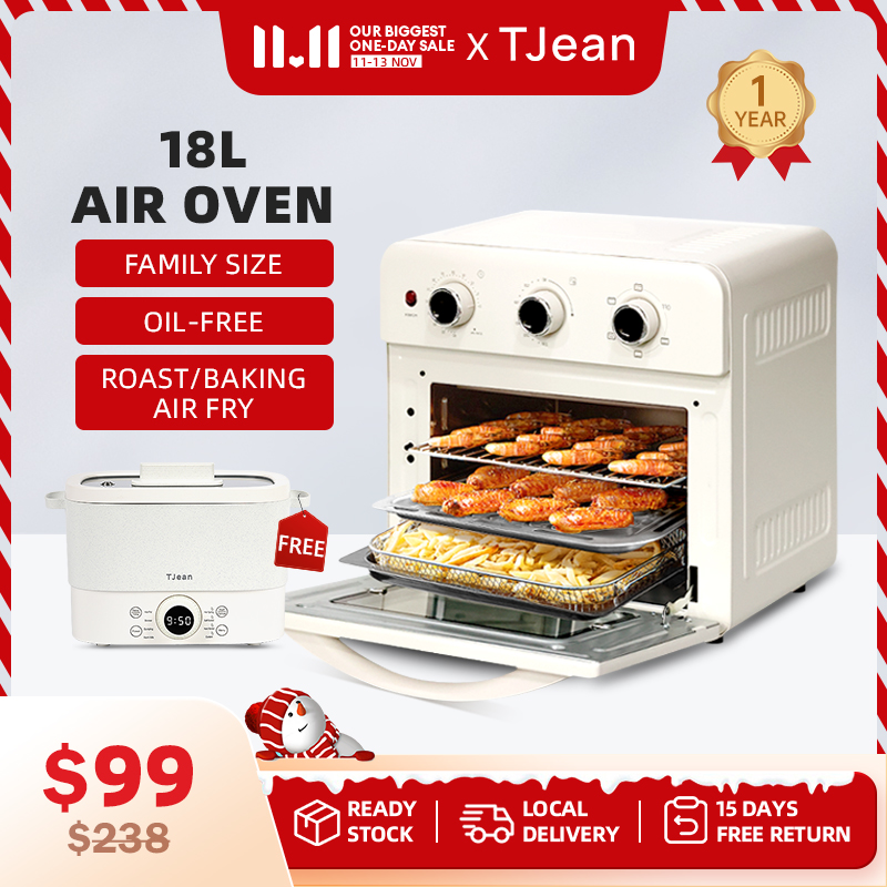 TJean 18L Air Oven Large Capacity Visual Oil Free Air Fryer Healthy Food Grade Material Multi Functional Deep Fry Electric Kitchen Appliance