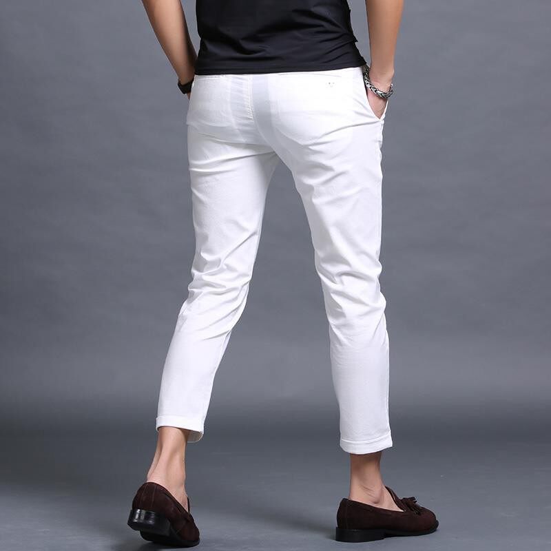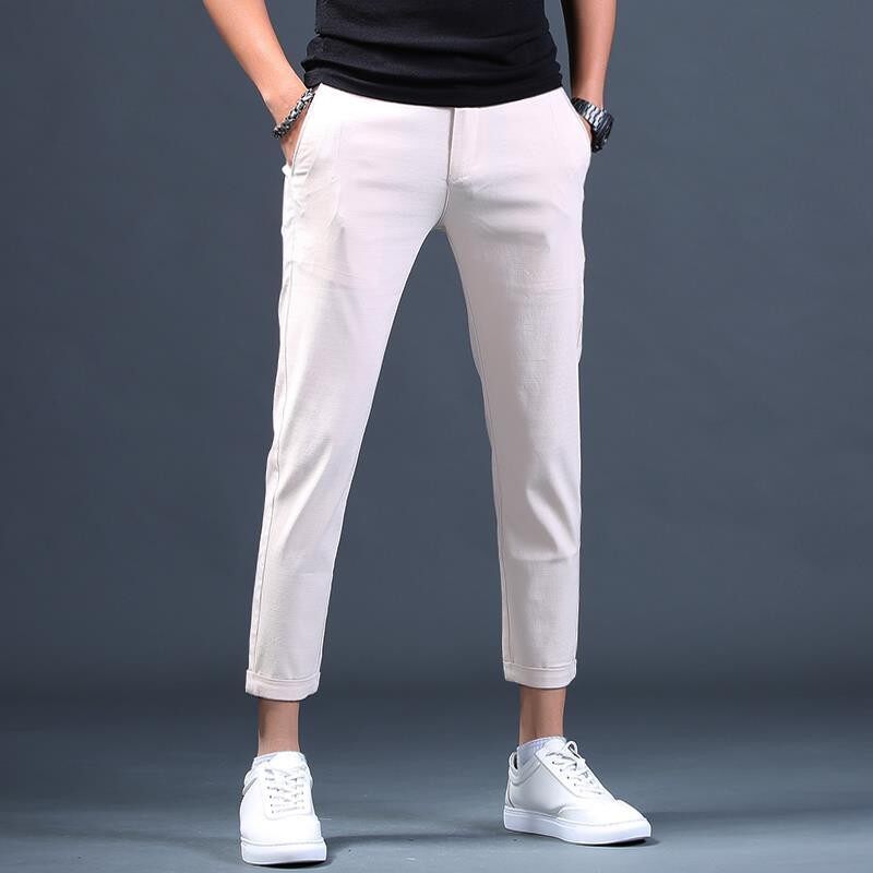 White Casual Nine-point Pants Men S Slim Korean Version of 9-point Small Trousers British Style Trend All-match Skinny Thin Seluar Kasual Putih Sembilan Titik Lelaki Pendek