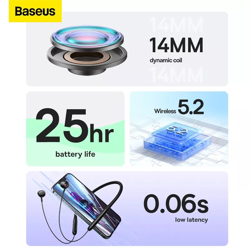 Baseus P1 Neckband Earphone In Ear Neckband wireless Bluetooth 5.2 Wireless Headphone Hifi Stereo Game Earbuds with Mic Magnetic Headset Neck Earphones Noise Cancelling Waterproof Earphone