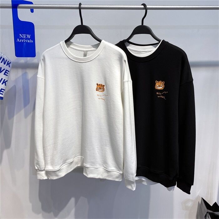 [Bird Family Peace] Original Men's Spring Tiger Printed round Neck Sweater Men's Cotton Shirt Trendy Brand Bottoming Shirt