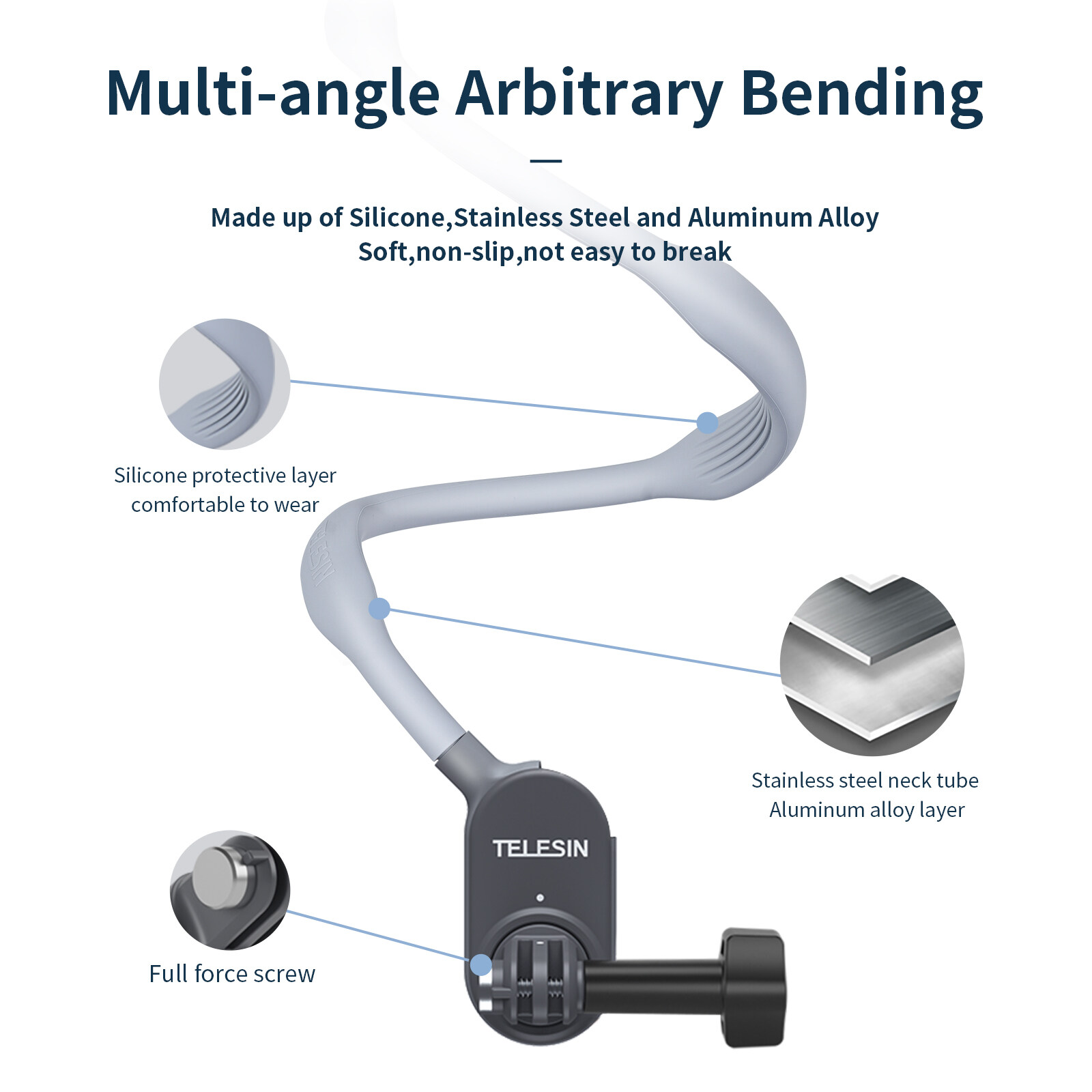 1.Best companion for first person view shooting!Suitable for mountain climbing, cycling, skiing, surfing, traveling vlog, self-driving tour etc. 2.Fit for GoPro,DJI Osmo Action,DJI Action 2,Insta360,SJCAM,EKEN,etc action camera and for IPhone,Samsung,Huawei,Xiaomi etc smartphone(need to use with phone clip and adapter) . 3.Has silicone protective layer,multi-angle arbitrary bending,soft and rigid,not easy to break. 4.Smart phone and action camera both support horizontal and vertical shooting,help you capture wonderful photos! 5.Magnetic rotating interface quick to wear and easy to install. 6.Quick release button helps you quickly remove the neck hold mount! 7.Ergonmic contour shape silky smooth.Feel comfortable to wear for a long time!