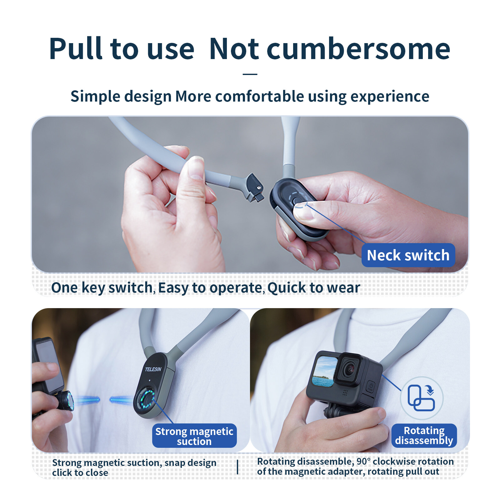 TELESIN Smartphone Chest Mount Soft Silicone Magnetic Neck Hold Quick Release for GoPro Hero 10 9 8 7 6 5 4 Insta360 DJI Osmo Action DJI Action 2 SJCAM EKEN IPhone Samsung Huawei Xiaomi