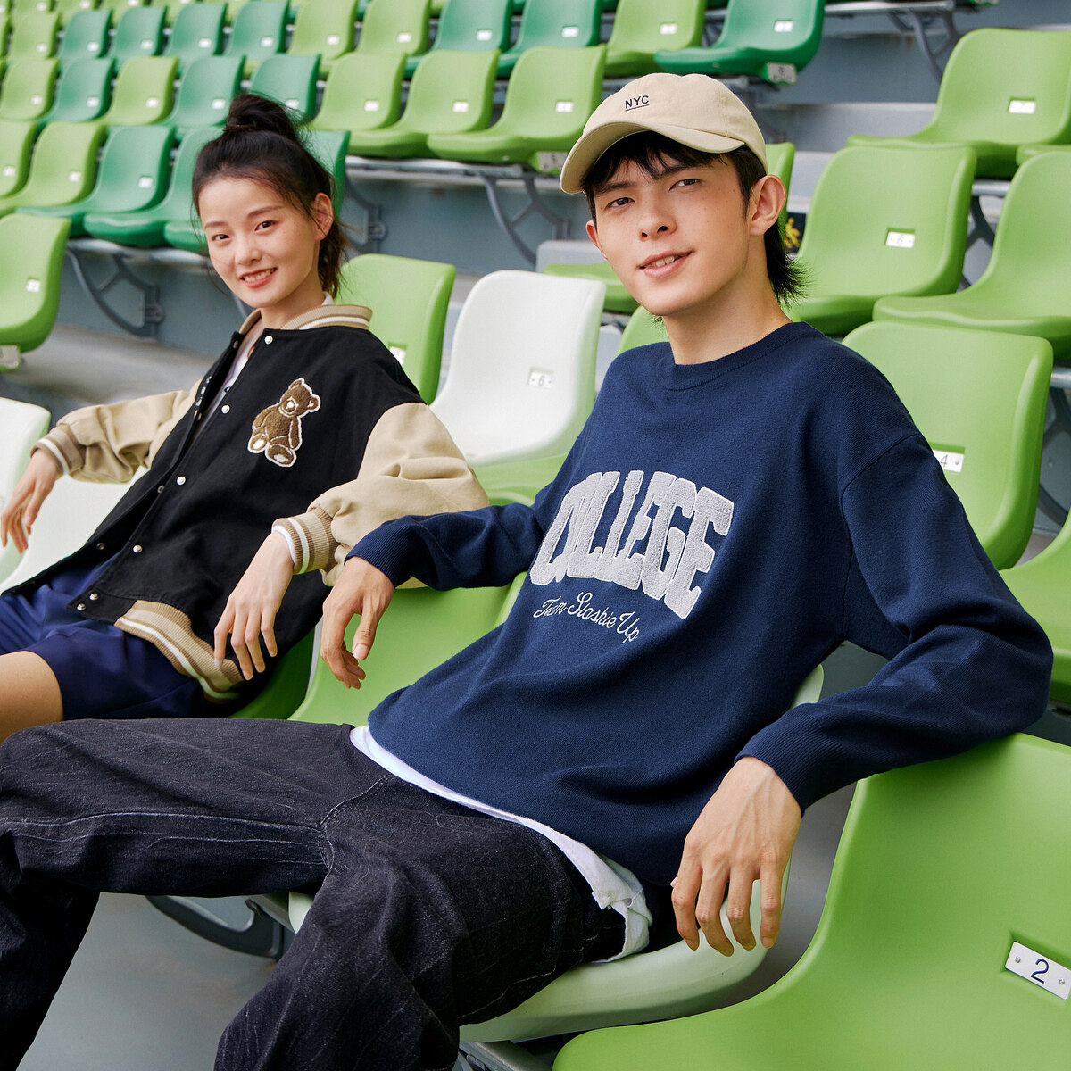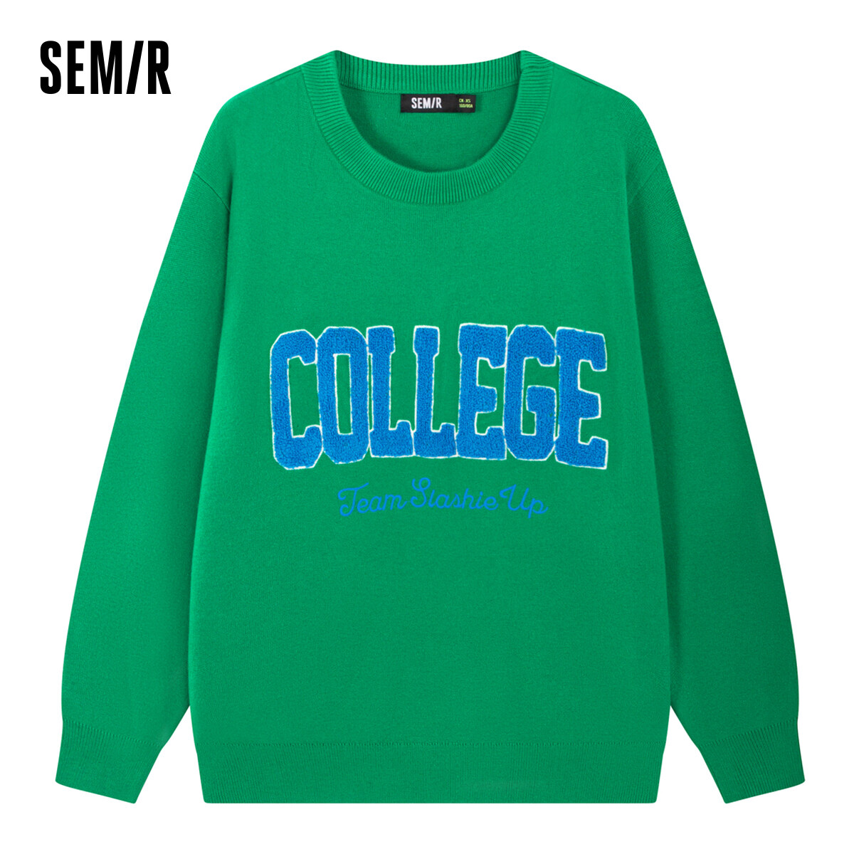 Semir Knitwear Men Oversize Retro American Trend Sweater Campus Alphabet Embroidered Sweater Korean Fan Top