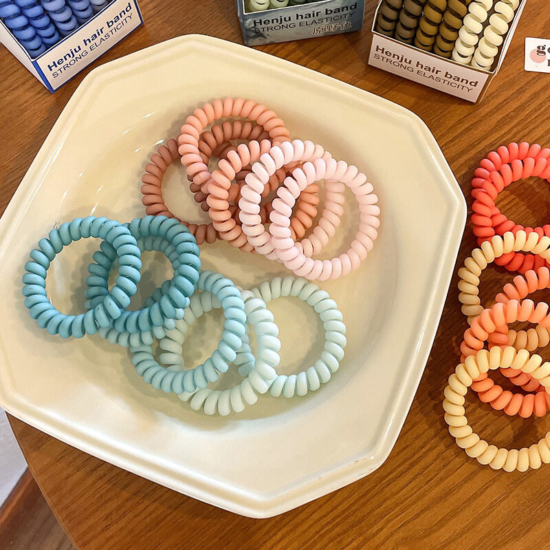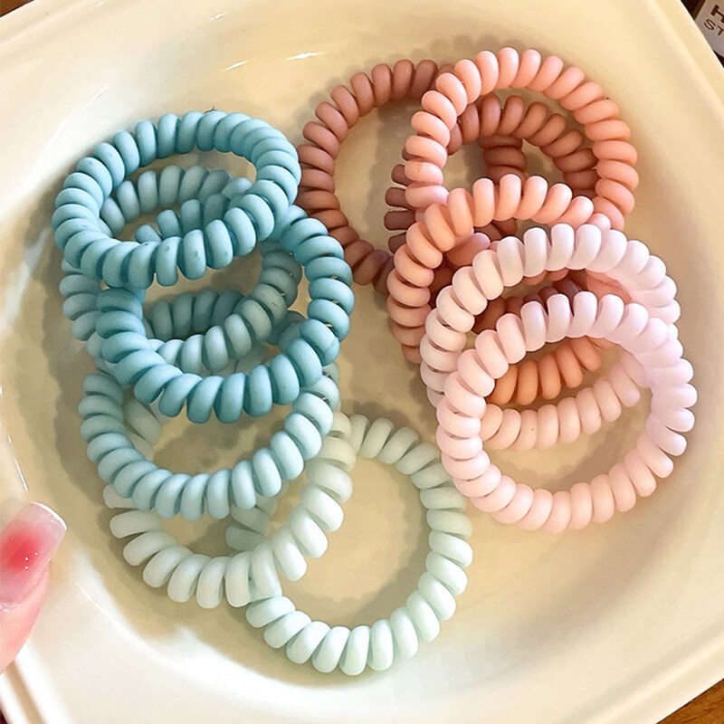 1 Set Candy Color Telephone Line Hair Rope for Women Matte Frosted Solid Color Hair Ties Korean Style Simple Sweet Hair Rings Girls Female Headwear